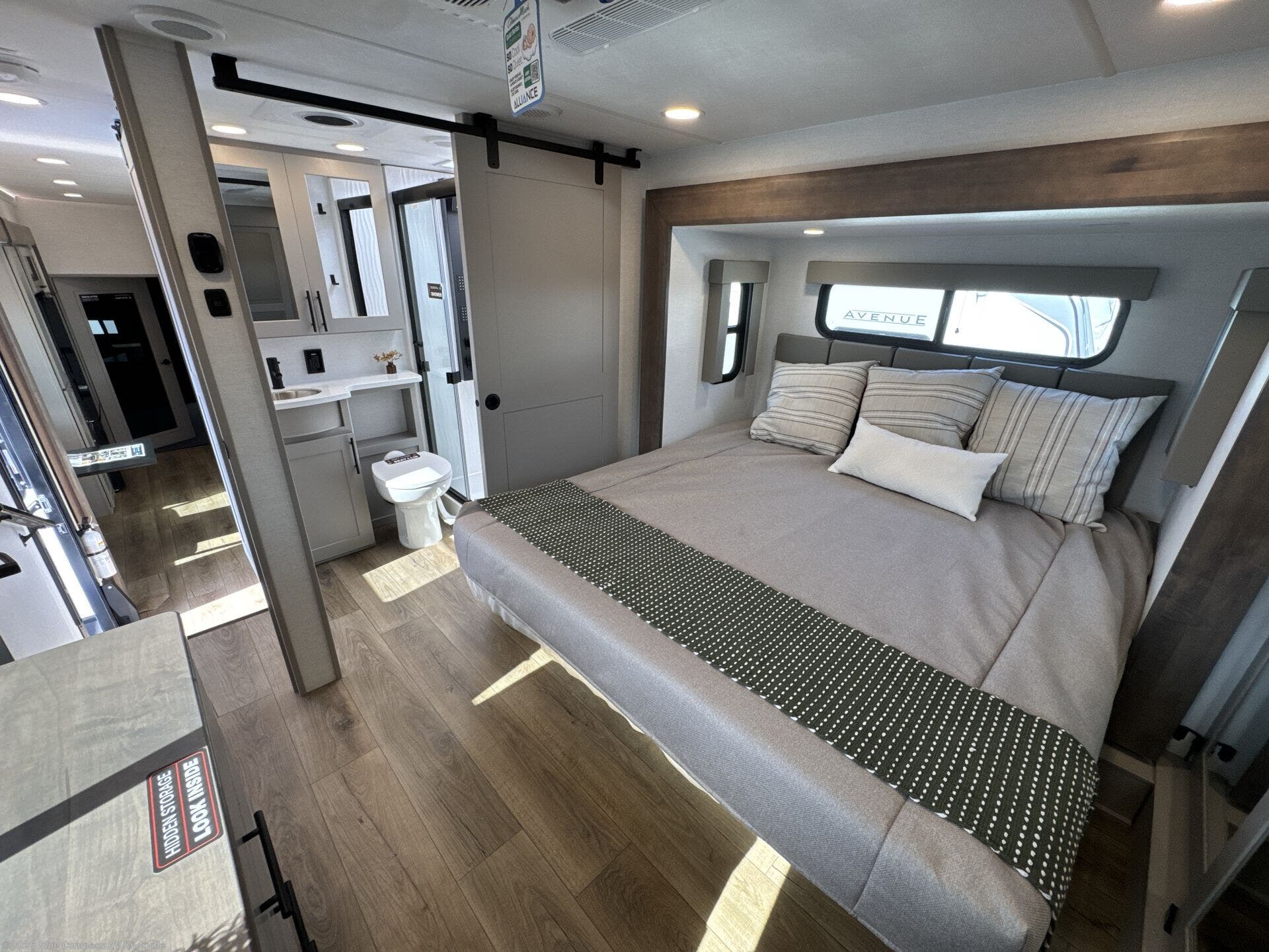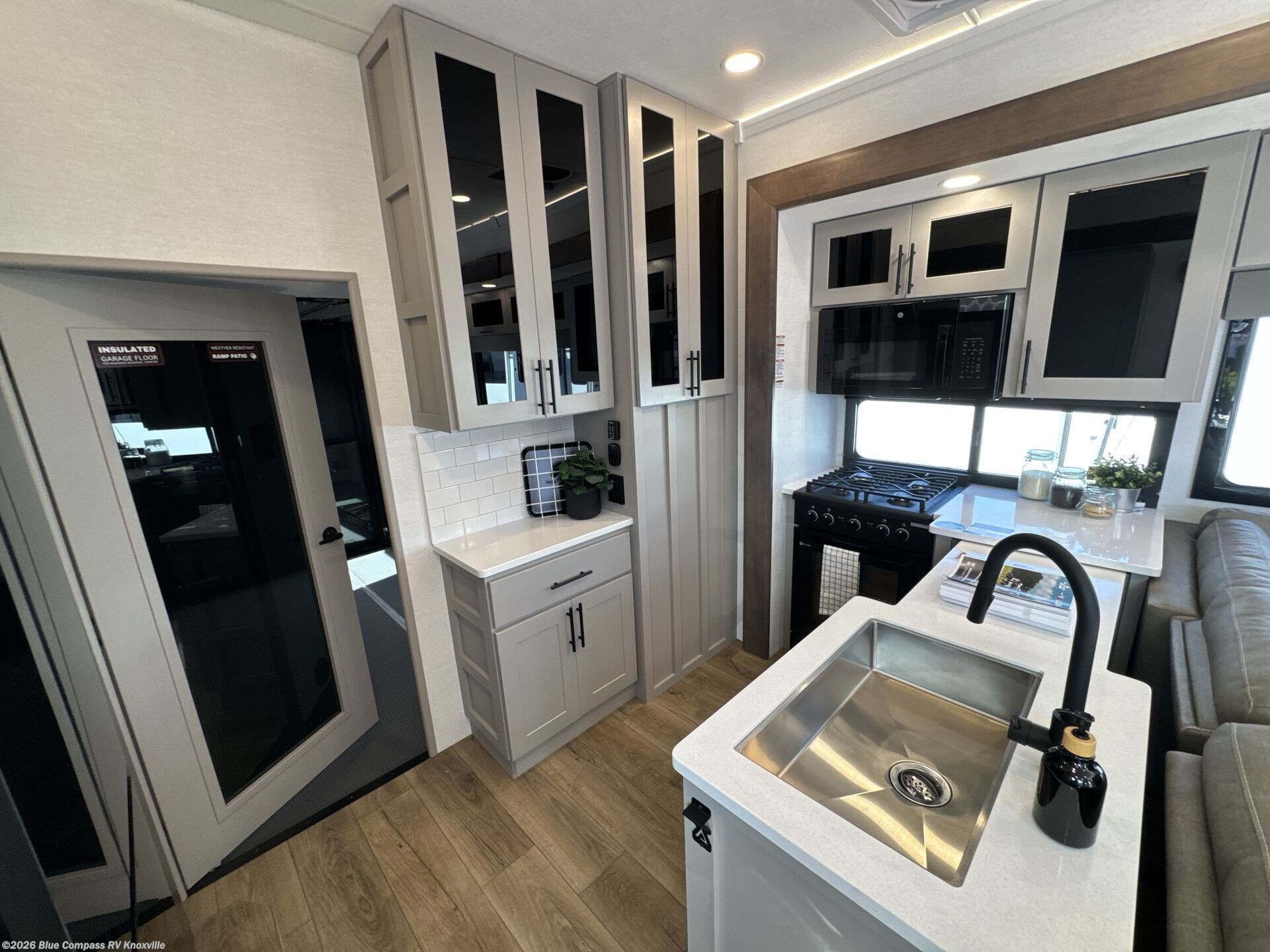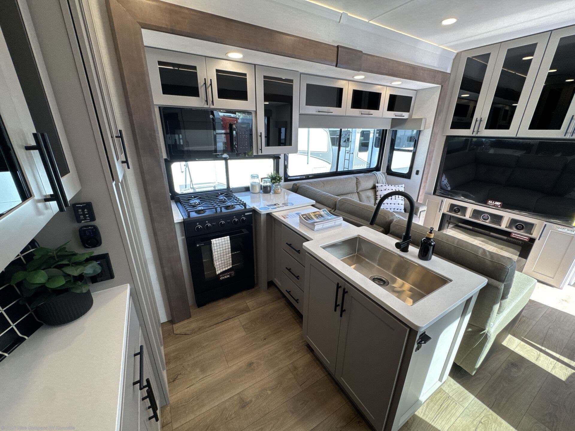 You can bring your toys with you wherever you go with any one of these Alliance RV Valor toy hauler fifth wheels! They are adventure-ready with a quality build from the walk on roof with seamless PVC roof covering to the commercial grade vinyl flooring and MorRyde CRE3000 suspension system. The Performance Running Gear package comes with a 101" wide-body benchmark chassis platform, Dexter axles, and a space enhancing drop frame storage compartment to pack in all your riding gear. You can even go off-gridding thanks to the Off the Grid Pack that has two 400-watt solar panels, generator prep, a 60-amp charge controller, and a 100-amp hour lithium iron phosphate battery. Some of the interior comforts you will enjoy are the hardwood cabinet doors and drawers, solid surface kitchen countertops, and commercial grade vinyl flooring with no carpet to make clean up a breeze. The Valor toy haulers are also the Masters of 12 Volt with USB charging station throughout, a 12V refrigerator, and more 12-volt features to make camping hassle-free!