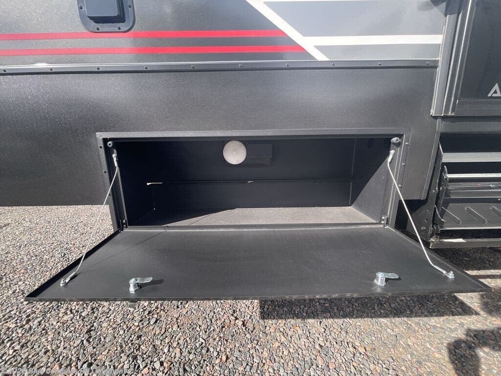 You can bring your toys with you wherever you go with any one of these Alliance RV Valor toy hauler fifth wheels! They are adventure-ready with a quality build from the walk on roof with seamless PVC roof covering to the commercial grade vinyl flooring and MorRyde CRE3000 suspension system. The Performance Running Gear package comes with a 101" wide-body benchmark chassis platform, Dexter axles, and a space enhancing drop frame storage compartment to pack in all your riding gear. You can even go off-gridding thanks to the Off the Grid Pack that has two 400-watt solar panels, generator prep, a 60-amp charge controller, and a 100-amp hour lithium iron phosphate battery. Some of the interior comforts you will enjoy are the hardwood cabinet doors and drawers, solid surface kitchen countertops, and commercial grade vinyl flooring with no carpet to make clean up a breeze. The Valor toy haulers are also the Masters of 12 Volt with USB charging station throughout, a 12V refrigerator, and more 12-volt features to make camping hassle-free!