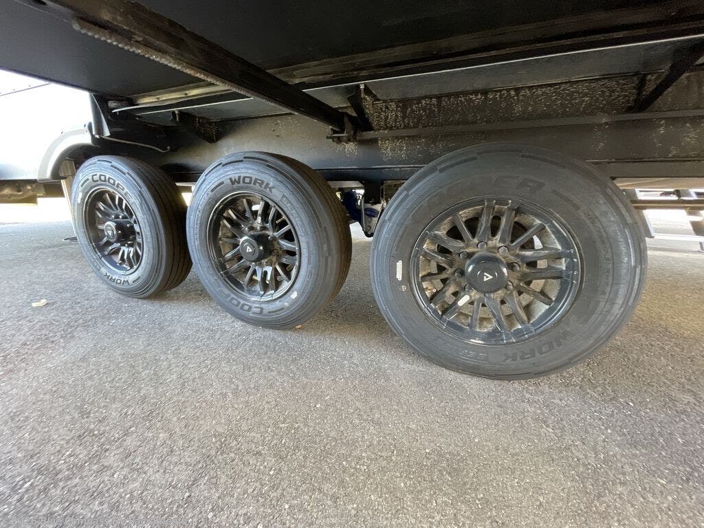 You can bring your toys with you wherever you go with any one of these Alliance RV Valor toy hauler fifth wheels! They are adventure-ready with a quality build from the walk on roof with seamless PVC roof covering to the commercial grade vinyl flooring and MorRyde CRE3000 suspension system. The Performance Running Gear package comes with a 101" wide-body benchmark chassis platform, 7,000 lb. Dexter axles, and a space enhancing drop frame storage compartment to pack in all your riding gear. You can even go off-gridding thanks to the Off the Grid Pack that has two 400-watt solar panels, generator prep, a 60-amp charge controller, and a 100-amp hour lithium iron phosphate battery. Some of the interior comforts you will enjoy are the hardwood cabinet doors and drawers, solid surface kitchen countertops, and commercial grade vinyl flooring with no carpet to make clean up a breeze. The Valor toy haulers are also the Masters of 12 Volt with USB charging station throughout, a 12V refrigerator, and more 12-volt features to make camping hassle-free!