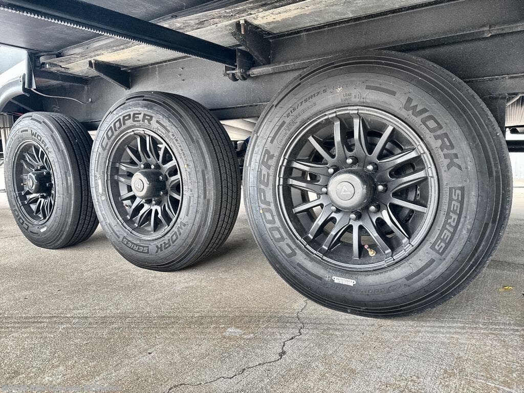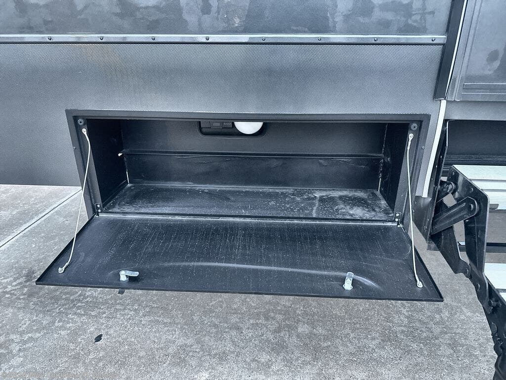 You can bring your toys with you wherever you go with any one of these Alliance RV Valor toy hauler fifth wheels! They are adventure-ready with a quality build from the walk on roof with seamless PVC roof covering to the commercial grade vinyl flooring and MorRyde CRE3000 suspension system. The Performance Running Gear package comes with a 101" wide-body benchmark chassis platform, 7,000 lb. Dexter axles, and a space enhancing drop frame storage compartment to pack in all your riding gear. You can even go off-gridding thanks to the Off the Grid Pack that has two 400-watt solar panels, generator prep, a 60-amp charge controller, and a 100-amp hour lithium iron phosphate battery. Some of the interior comforts you will enjoy are the hardwood cabinet doors and drawers, solid surface kitchen countertops, and commercial grade vinyl flooring with no carpet to make clean up a breeze. The Valor toy haulers are also the Masters of 12 Volt with USB charging station throughout, a 12V refrigerator, and more 12-volt features to make camping hassle-free!