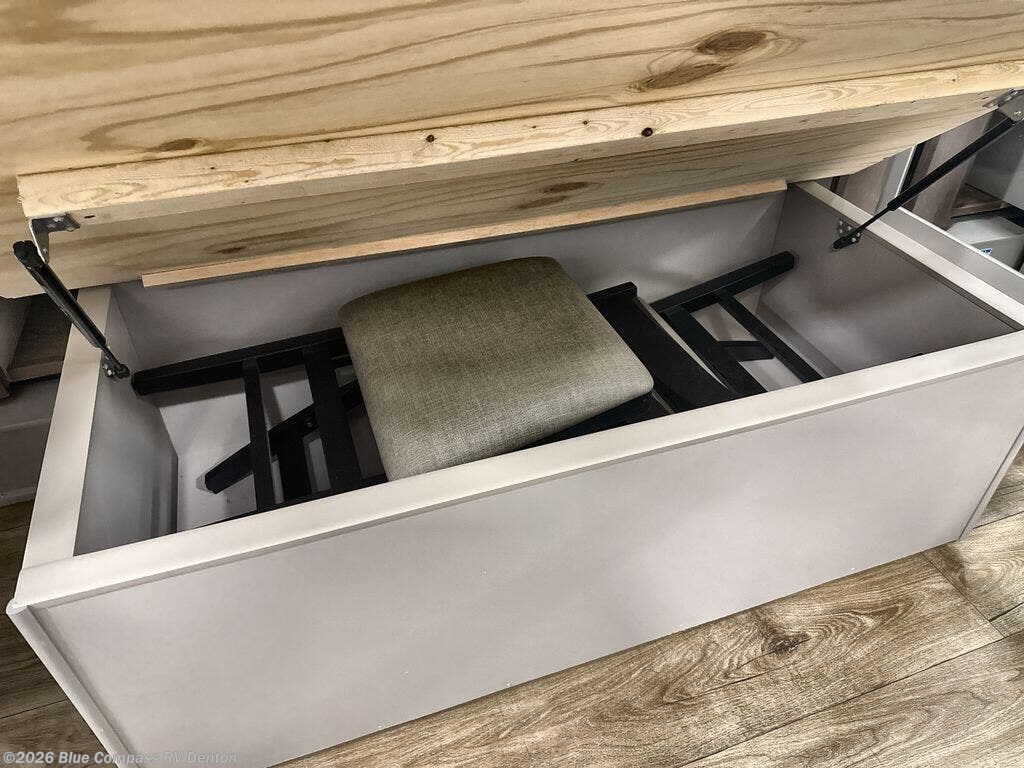 There is room for your off-road toys and the whole family in this toy hauler! The bath and a half makes life more convenient and the dual entry doors create a smooth flow of traffic in and out of the unit. Aside from 13' of garage space and an entrance/exit door, there are also opposing 60" sofas with a HappiJac queen bed above them, a loft that opens to the garage, and a half bathroom. The chef can prepare their best meals with the four-burner cooktop while your crew plays a game at the free-standing dinette with chairs. After a fun day on the trails, wash up in the full bathroom with the 48" x 30" shower, grab your pajamas from the front wardrobe or flip top dresser in the front private bedroom, and sleep soundly on the king bed slide out!