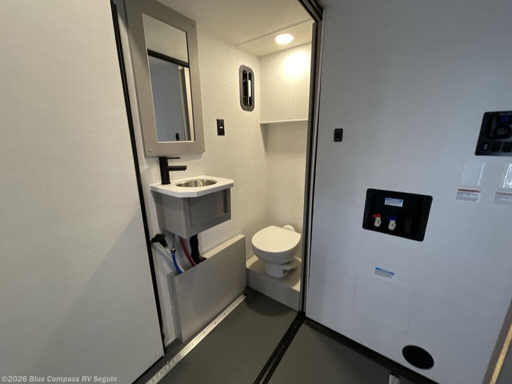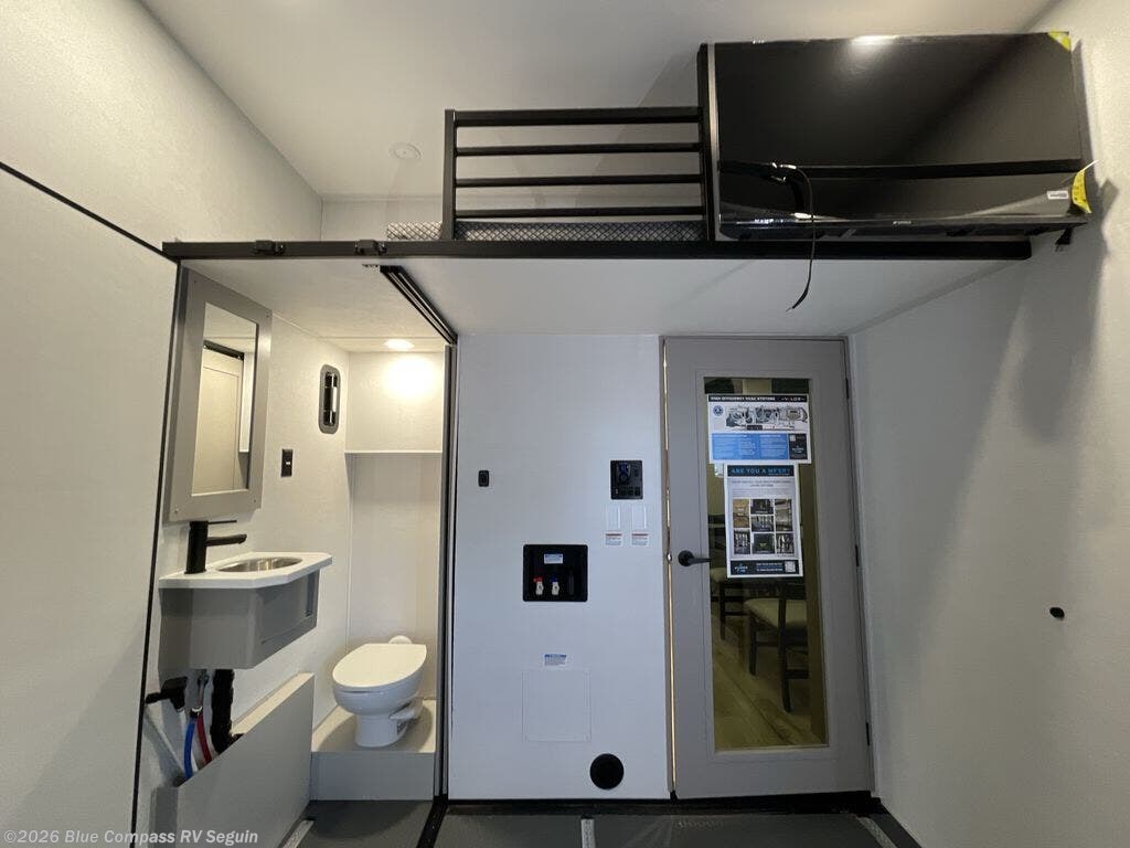 There is room for your off-road toys and the whole family in this toy hauler! The bath and a half makes life more convenient and the dual entry doors create a smooth flow of traffic in and out of the unit. Aside from 13' of garage space and an entrance/exit door, there are also opposing 60" sofas with a HappiJac queen bed above them, a loft that opens to the garage, and a half bathroom. The chef can prepare their best meals with the four-burner cooktop while your crew plays a game at the free-standing dinette with chairs. After a fun day on the trails, wash up in the full bathroom with the 48" x 30" shower, grab your pajamas from the front wardrobe or flip top dresser in the front private bedroom, and sleep soundly on the king bed slide out!