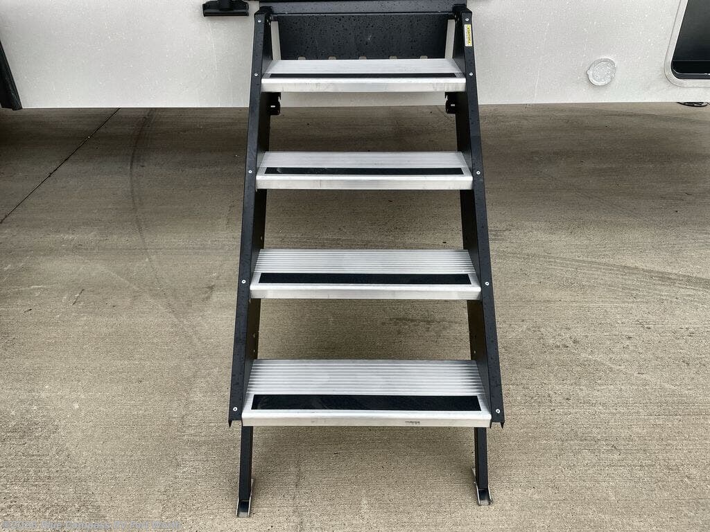 There is room for your off-road toys and the whole family in this toy hauler! The bath and a half makes life more convenient and the dual entry doors create a smooth flow of traffic in and out of the unit. Aside from 13' of garage space and an entrance/exit door, there are also opposing 60" sofas with a HappiJac queen bed above them, a loft that opens to the garage, and a half bathroom. The chef can prepare their best meals with the four-burner cooktop while your crew plays a game at the free-standing dinette with chairs. After a fun day on the trails, wash up in the full bathroom with the 48" x 30" shower, grab your pajamas from the front wardrobe or flip top dresser in the front private bedroom, and sleep soundly on the king bed slide out!