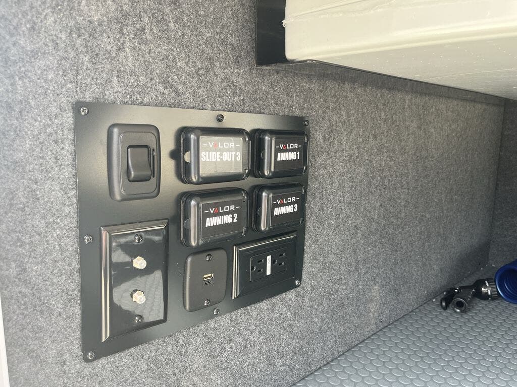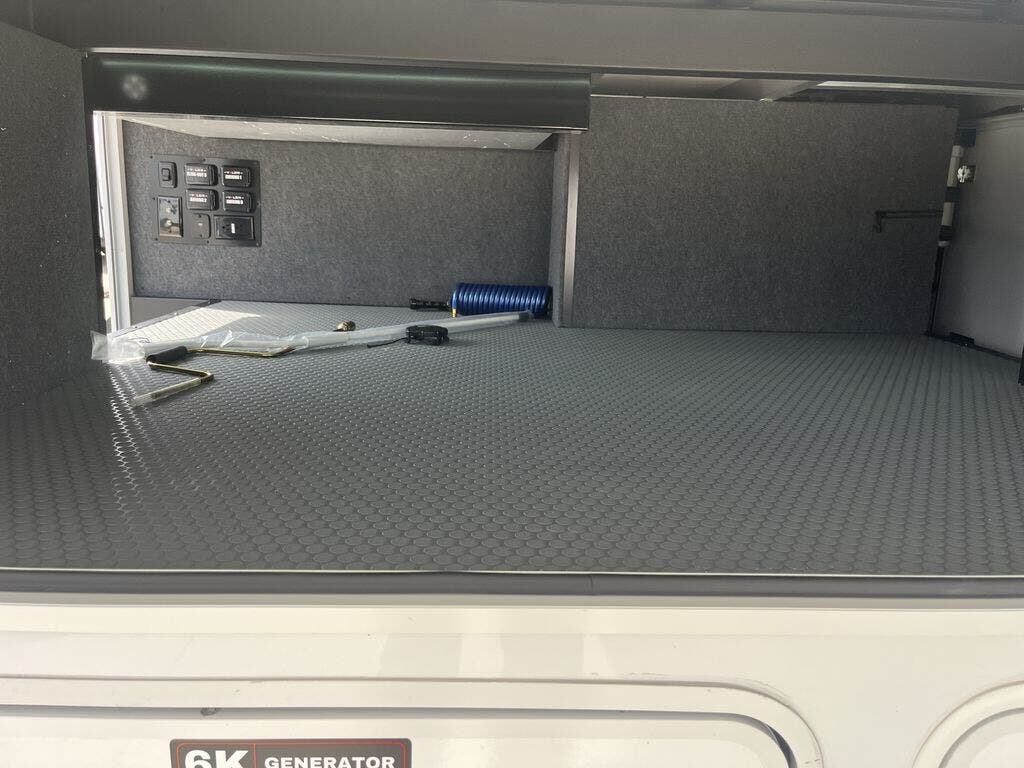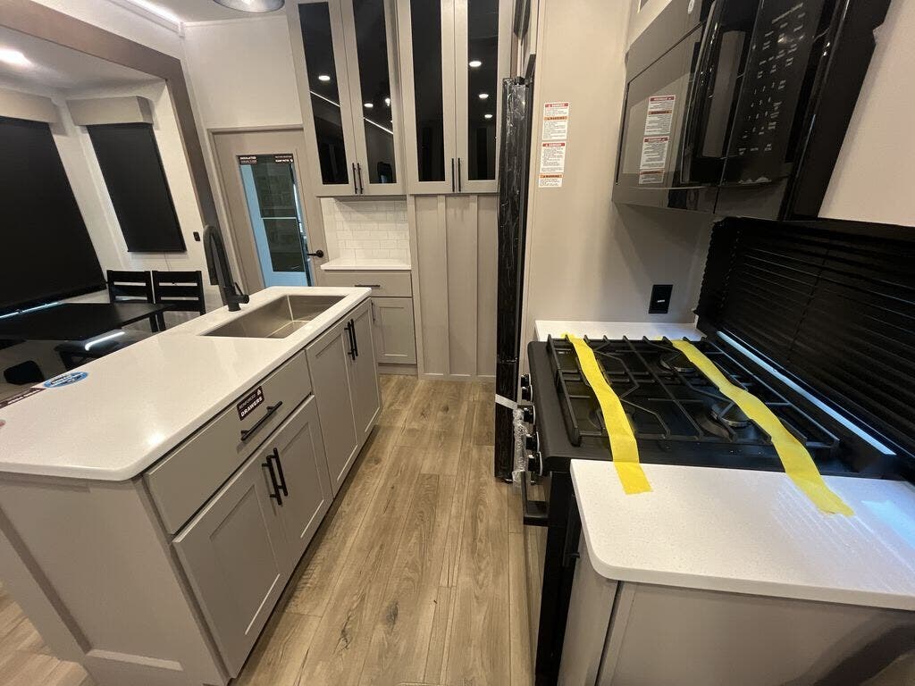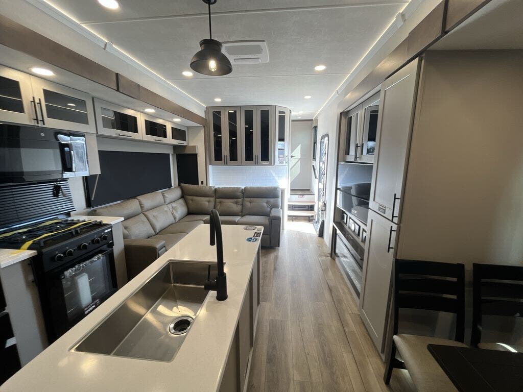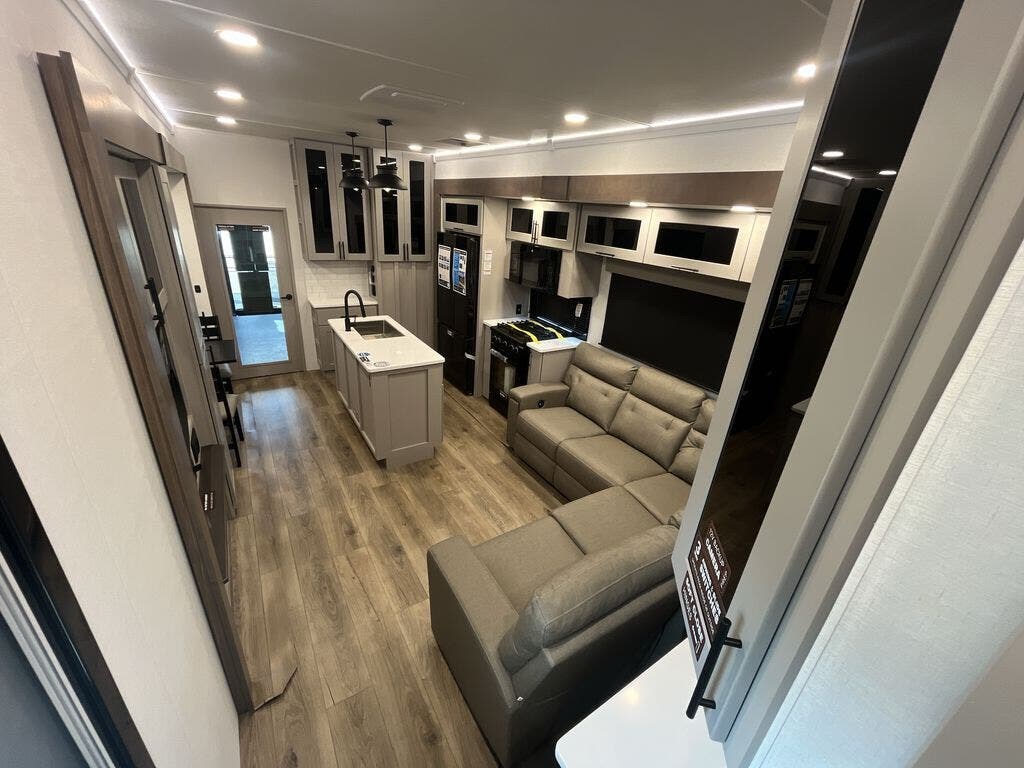You can bring your toys with you wherever you go with any one of these Alliance RV Valor toy hauler fifth wheels! They are adventure-ready with a quality build from the walk on roof with seamless PVC roof covering to the commercial grade vinyl flooring and MorRyde CRE3000 suspension system. The Performance Running Gear package comes with a 101" wide-body benchmark chassis platform, 7,000 lb. Dexter axles, and a space enhancing drop frame storage compartment to pack in all your riding gear. You can even go off-gridding thanks to the Off the Grid Pack that has two 400-watt solar panels, generator prep, a 60-amp charge controller, and a 100-amp hour lithium iron phosphate battery. Some of the interior comforts you will enjoy are the hardwood cabinet doors and drawers, solid surface kitchen countertops, and commercial grade vinyl flooring with no carpet to make clean up a breeze. The Valor toy haulers are also the Masters of 12 Volt with USB charging station throughout, a 12V refrigerator, and more 12-volt features to make camping hassle-free!