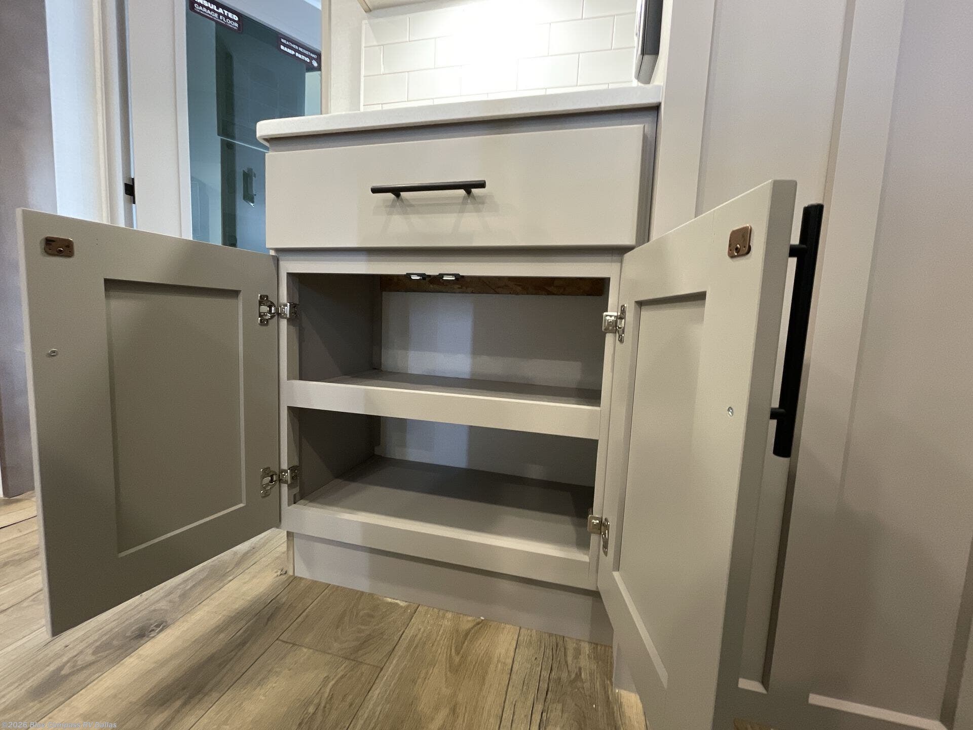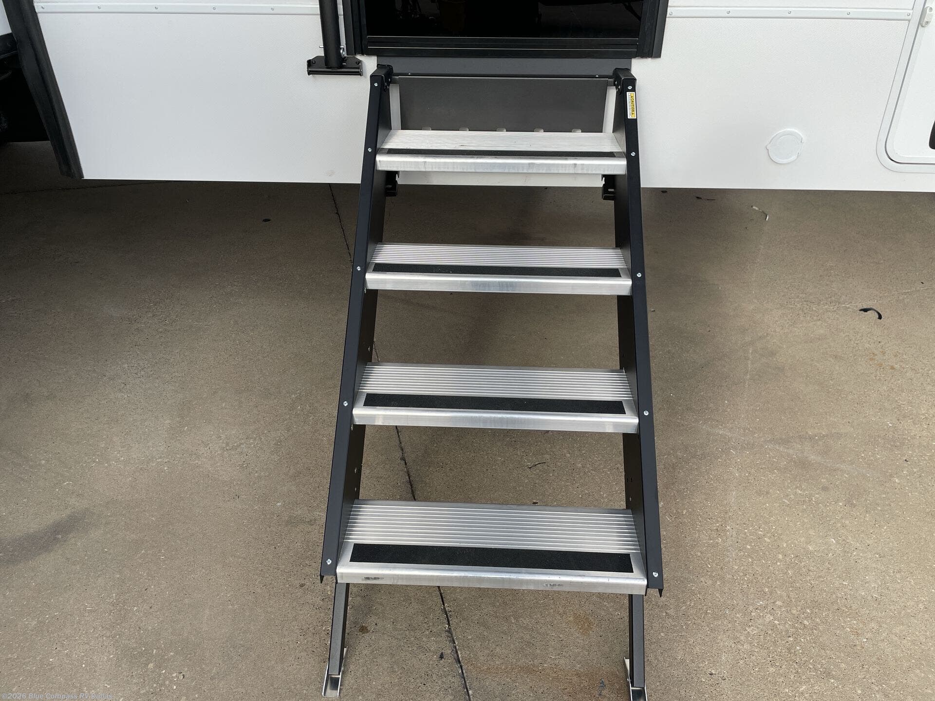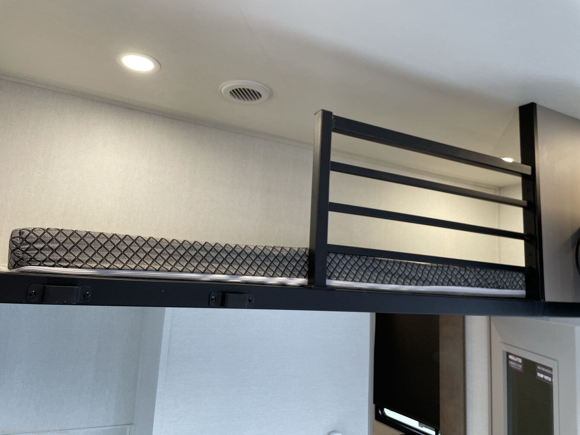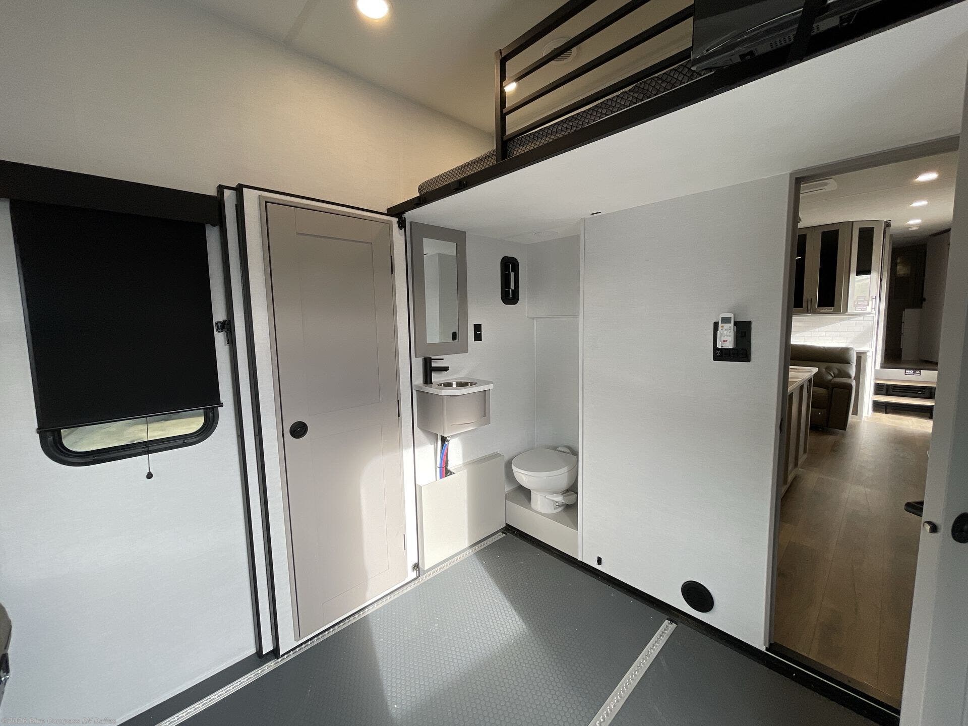 There is room for your off-road toys and the whole family in this toy hauler! The bath and a half makes life more convenient and the dual entry doors create a smooth flow of traffic in and out of the unit. Aside from 13' of garage space and an entrance/exit door, there are also opposing 60" sofas with a HappiJac queen bed above them, a loft that opens to the garage, and a half bathroom. The chef can prepare their best meals with the four-burner cooktop while your crew plays a game at the free-standing dinette with chairs. After a fun day on the trails, wash up in the full bathroom with the 48" x 30" shower, grab your pajamas from the front wardrobe or flip top dresser in the front private bedroom, and sleep soundly on the king bed slide out!