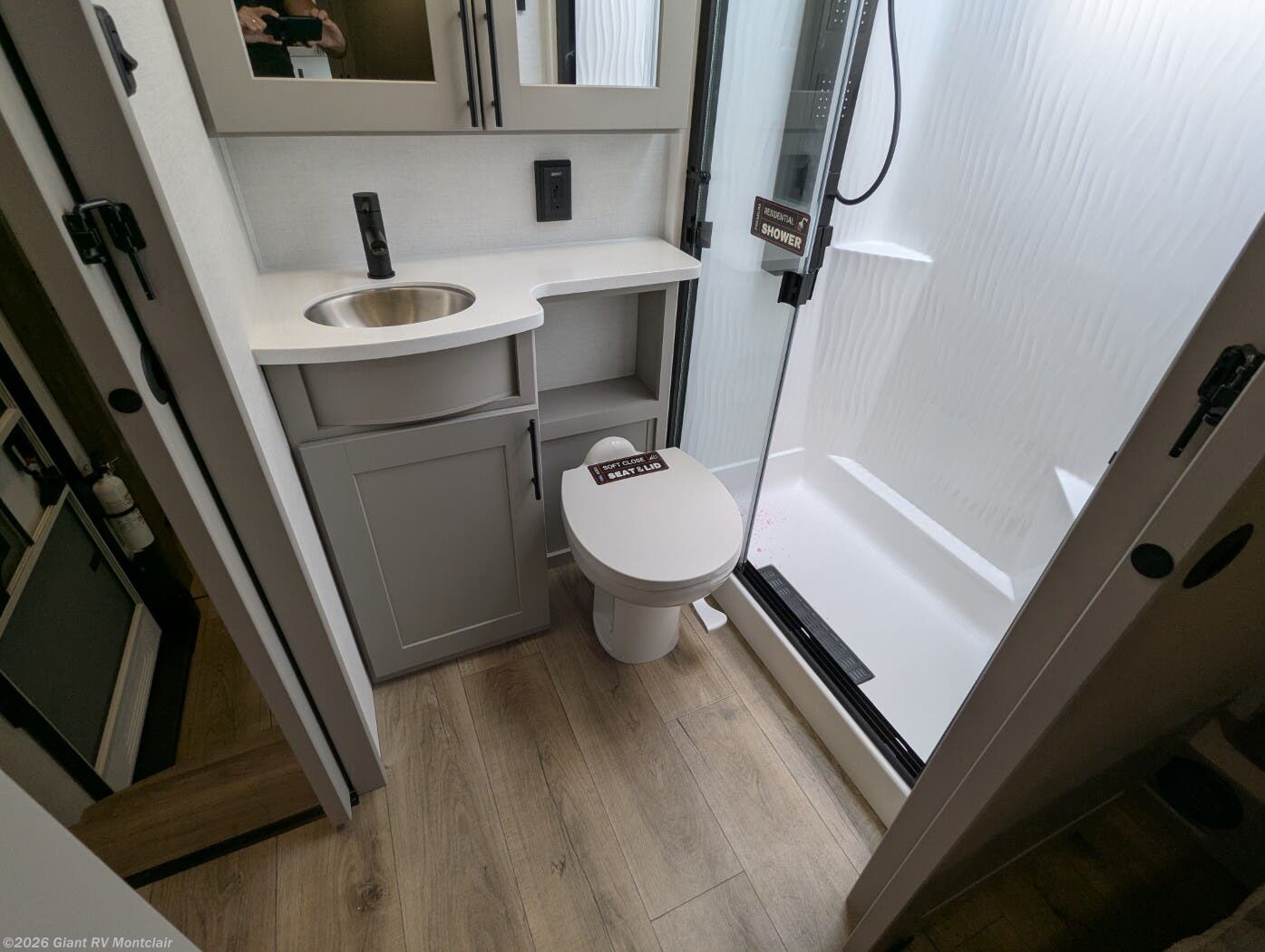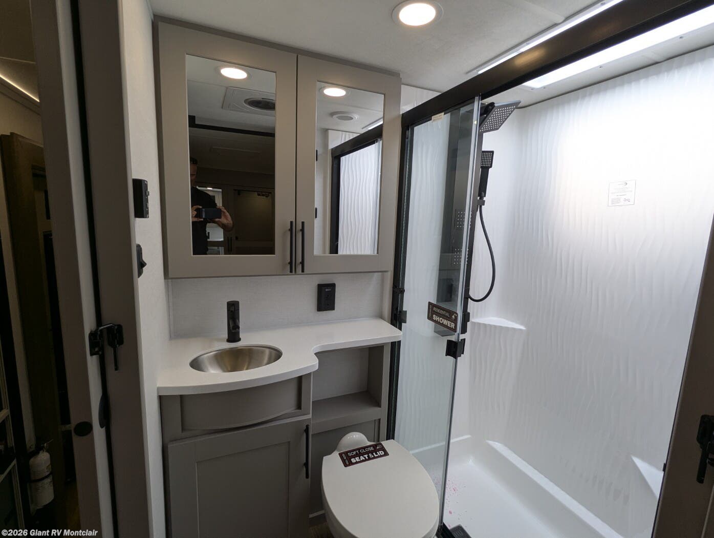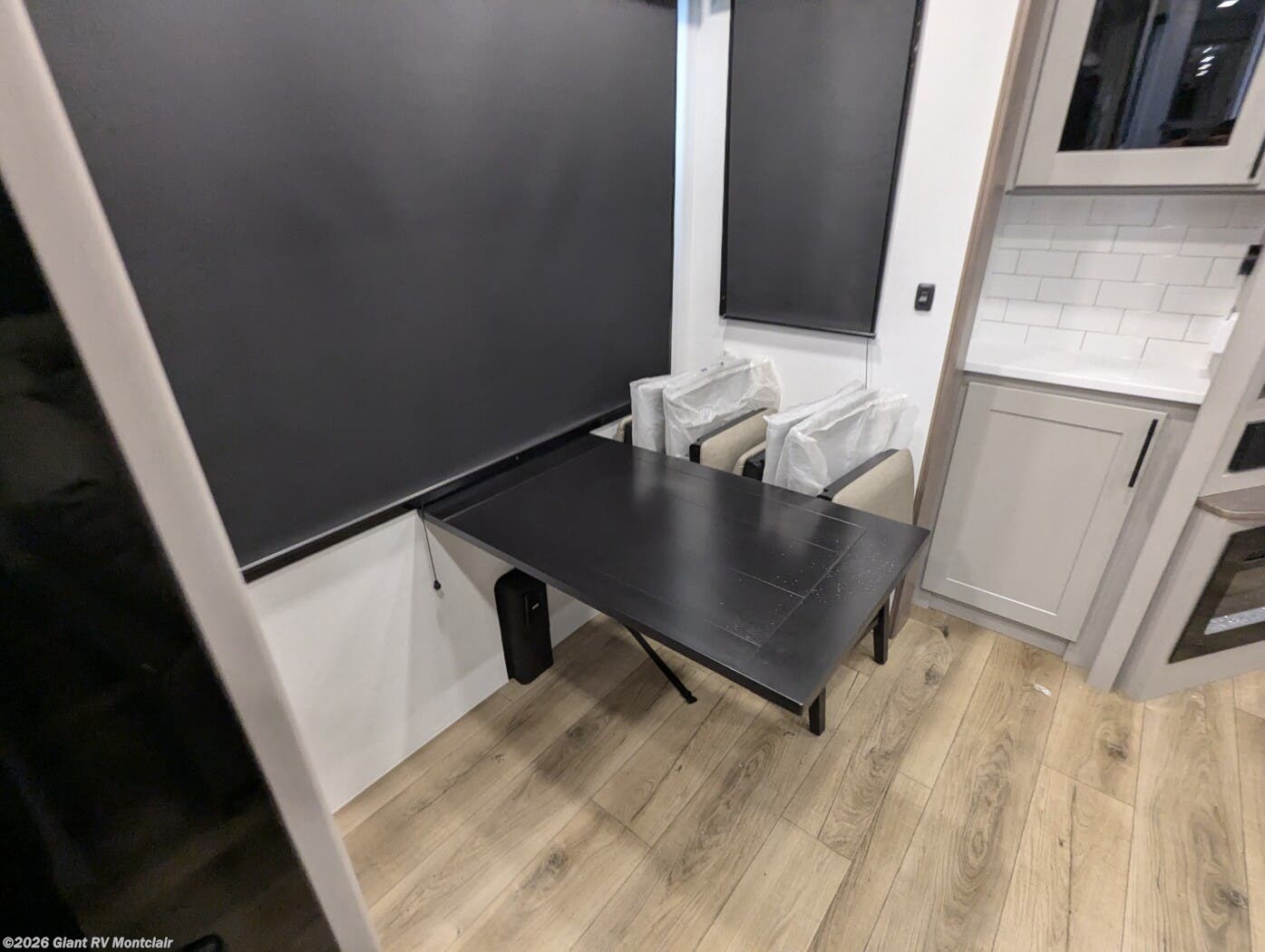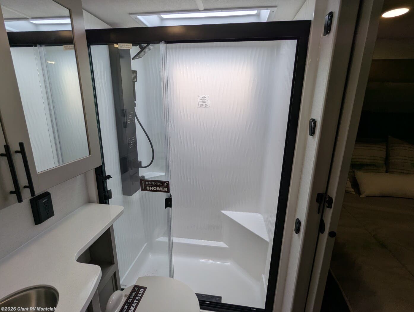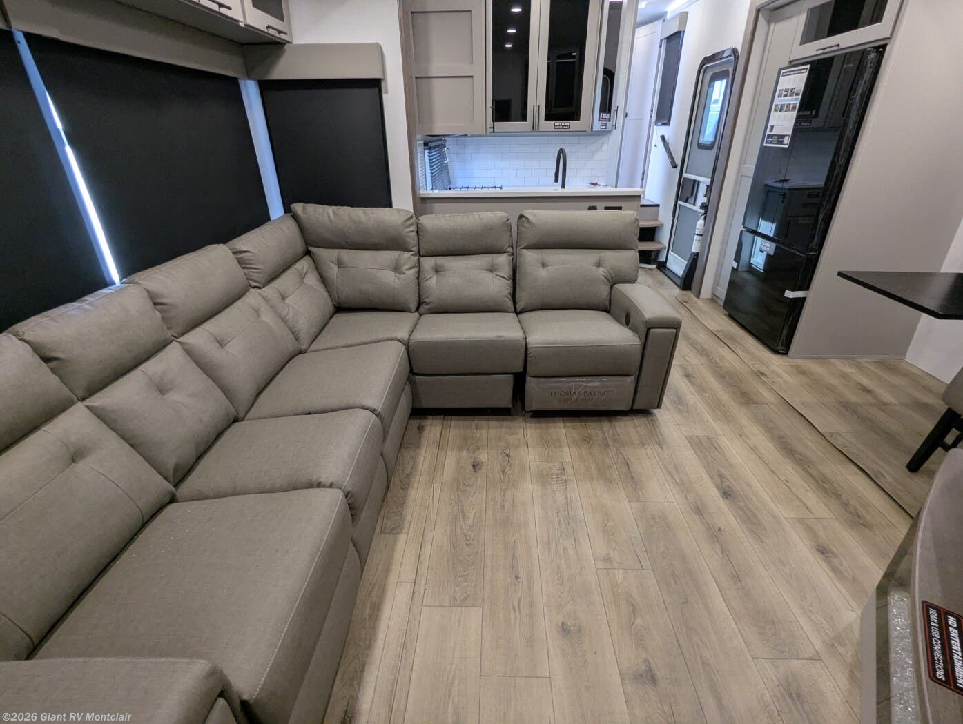 Front Private King Bedroom: Includes a private front king bed with wardrobe storage and theater seating, creating a true master-suite escape separate from the garage area.