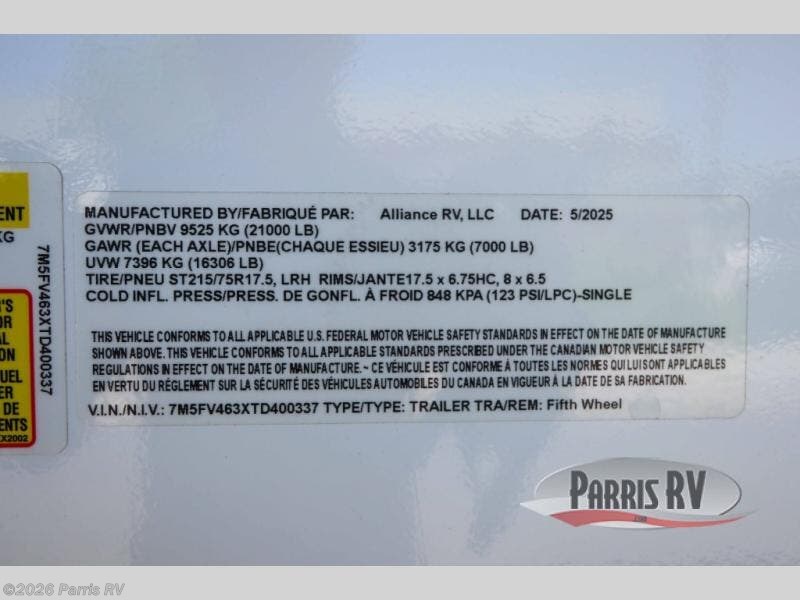 Request More Info on this 2026 Alliance RV Valor 44V14 Offered for sale by Parris RV