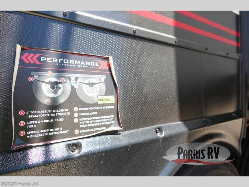 You can bring your toys with you wherever you go with any one of these Alliance RV Valor toy hauler fifth wheels! They are adventure-ready with a quality build from the walk on roof with seamless PVC roof covering to the commercial grade vinyl flooring and MorRyde CRE3000 suspension system. The Performance Running Gear package comes with a 101" wide-body benchmark chassis platform, 7,000 lb. Dexter axles, and a space enhancing drop frame storage compartment to pack in all your riding gear. You can even go off-gridding thanks to the Off the Grid Pack that has two 400 watt solar panels, generator prep, a 40 amp charge controller, and a 100 amp hour lithium iron phosphate battery. Some of the interior comforts you will enjoy are the hardwood cabinet doors and drawers, solid surface kitchen countertops, and commercial grade vinyl flooring with no carpet to make clean up a breeze. The Valor toy haulers are also the Master of 12 Volt with USB charging station throughout, a stainless steel refrigerator, and more 12 volt features to make camping hassle-free!