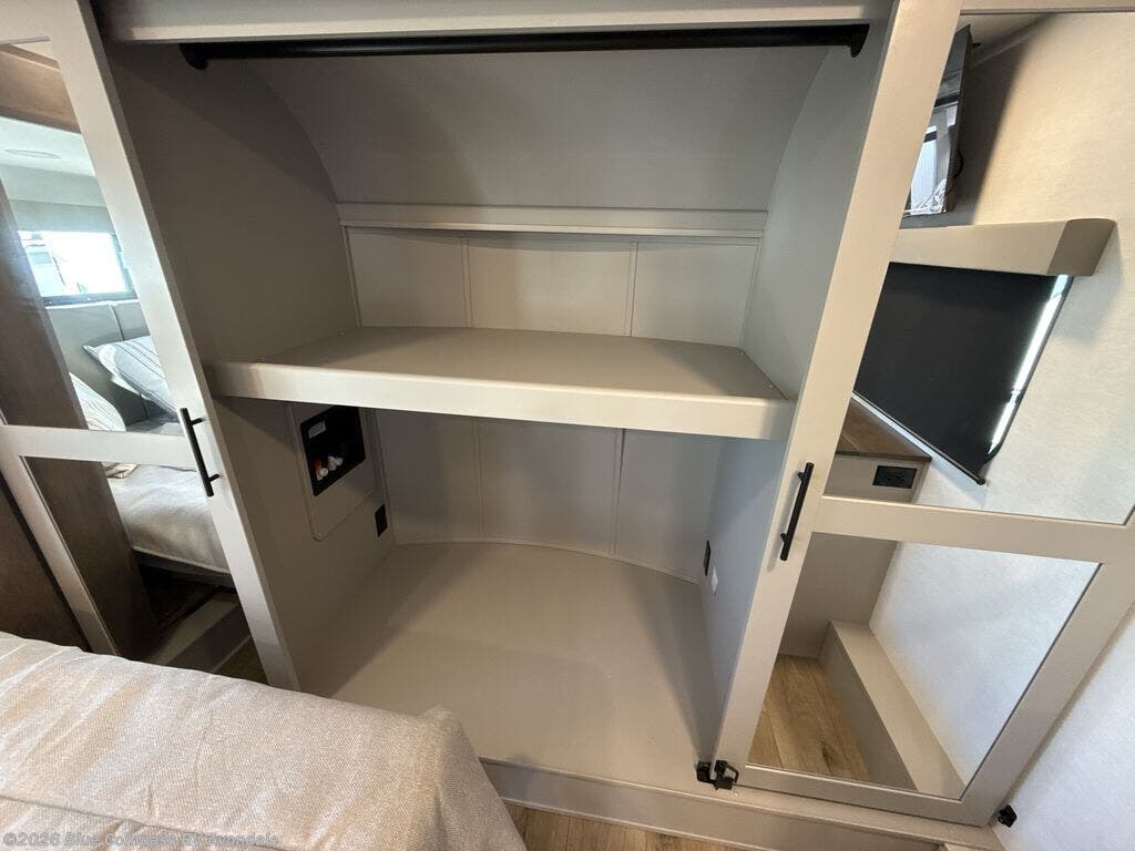 The whole gang will love camping in this toy hauler with a 14' garage for your toys and gear. Once you have arrived at your destination, you can set up the HappiJac roll-over sofas with a queen bed above them, and also a loft which opens to the garage area as well. A half bath is also available off the garage which is an added convenience for those sleeping in this converted area, and for those coming in off the trail so that they do not have to track all through the main unit to use the bathroom. The chef can prepare great meals for their hungry crew with the fully equipped kitchen including a four-burner cooktop, a 12V refrigerator, large sink, and plenty of countertop prep space. The rest of the gang can be relaxing on the large L-shaped sofa slide watching the 50" HDTV and enjoying the fireplace or playing a game of cards at the dining table with four chairs. The front private bedroom features a king bed slide for more interior space, a flip top dresser for all of your belongings, and a front wardrobe with washer and dryer prep, plus it has an entrance into the dual entry bathroom!