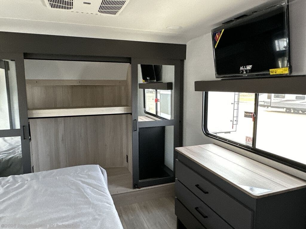 You can bring your toys with you wherever you go with any one of these Alliance RV Valor toy hauler fifth wheels! They are adventure-ready with a quality build from the walk on roof with seamless PVC roof covering to the commercial grade vinyl flooring and MorRyde CRE3000 suspension system. The Performance Running Gear package comes with a 101" wide-body benchmark chassis platform, 7,000 lb. Dexter axles, and a space enhancing drop frame storage compartment to pack in all your riding gear. You can even go off-gridding thanks to the Off the Grid Pack that has two 400-watt solar panels, generator prep, a 60-amp charge controller, and a 100-amp hour lithium iron phosphate battery. Some of the interior comforts you will enjoy are the hardwood cabinet doors and drawers, solid surface kitchen countertops, and commercial grade vinyl flooring with no carpet to make clean up a breeze. The Valor toy haulers are also the Master of 12 Volt with USB charging station throughout, a 12V refrigerator, and more 12-volt features to make camping hassle-free!
