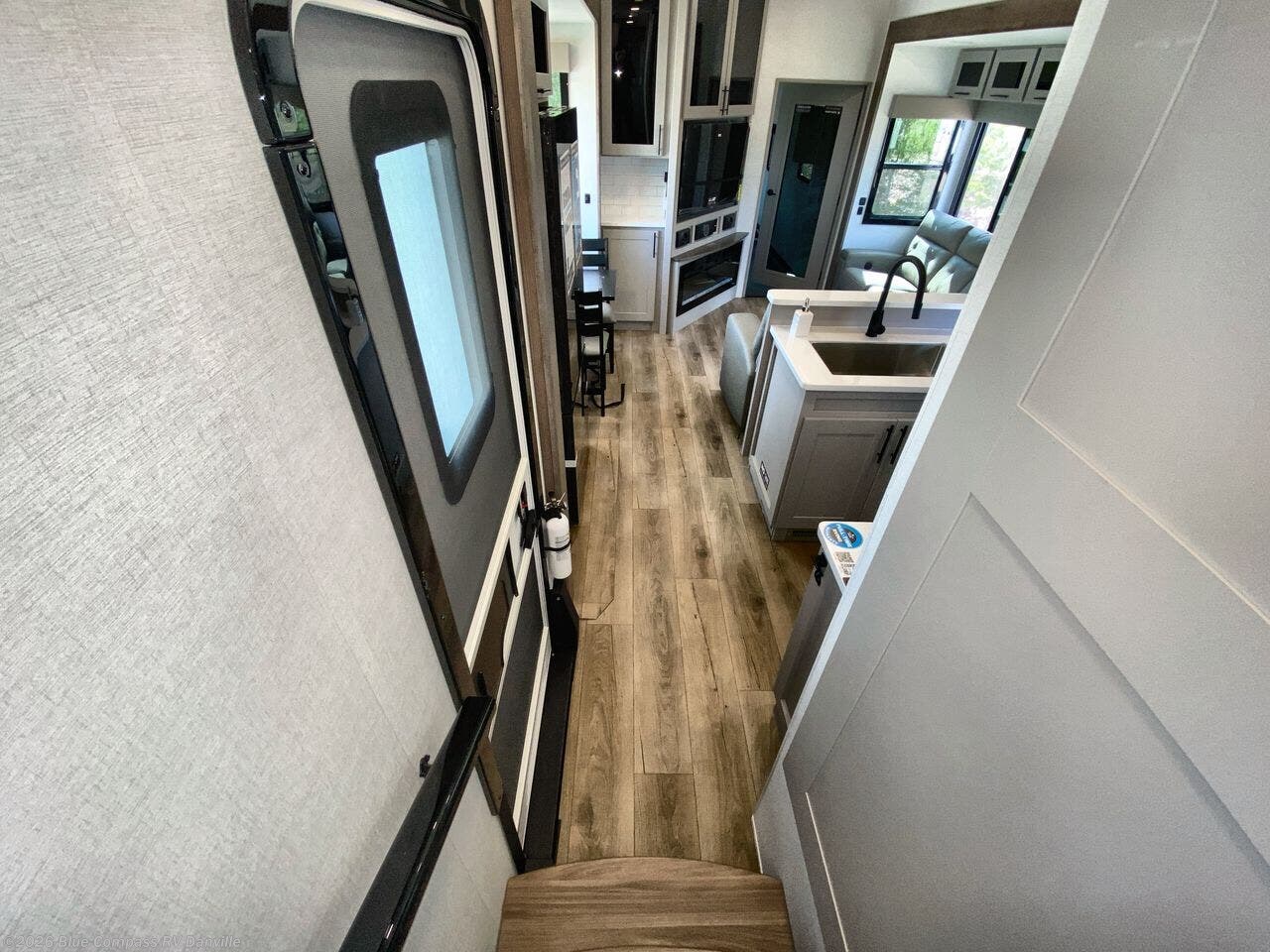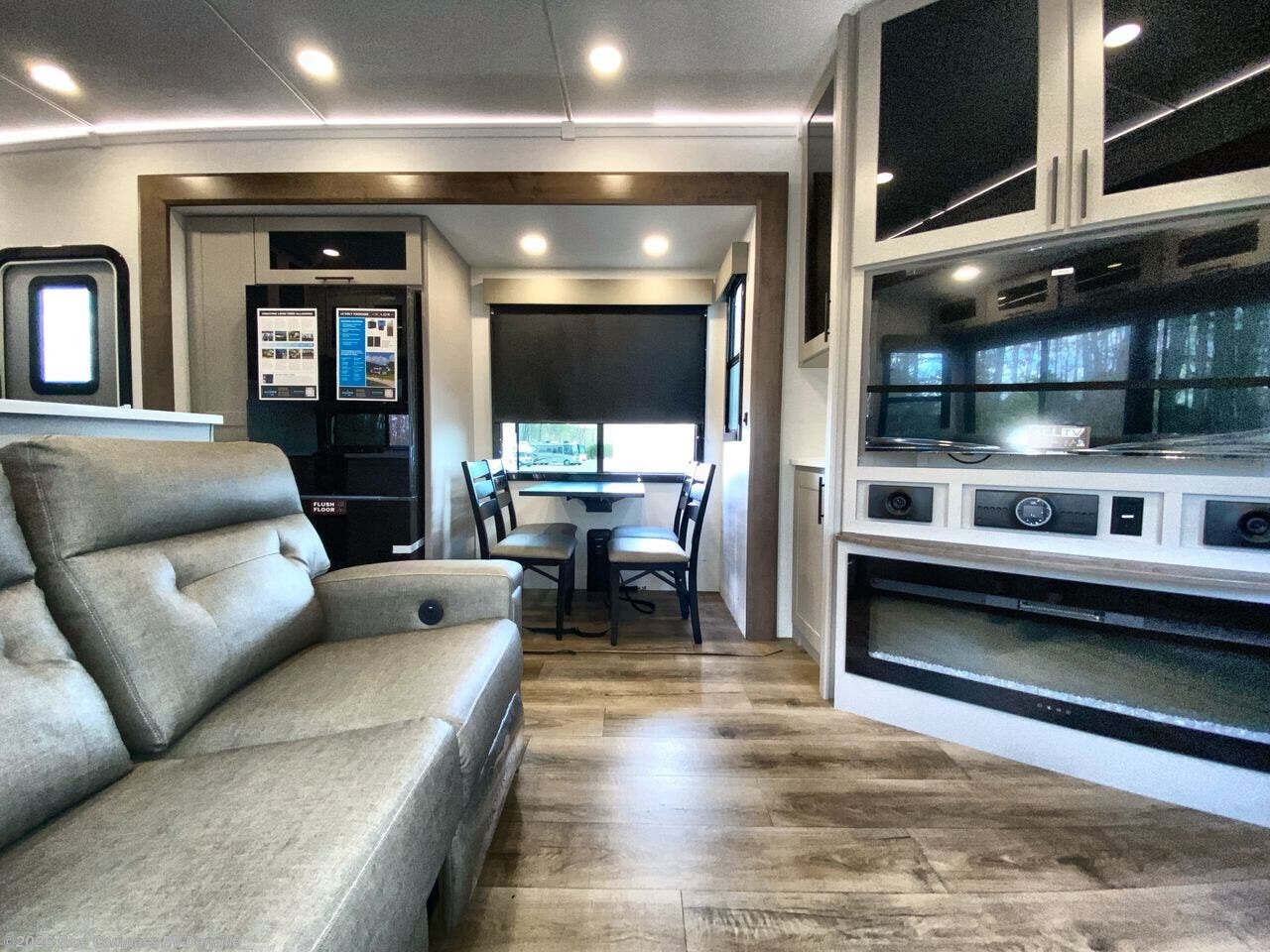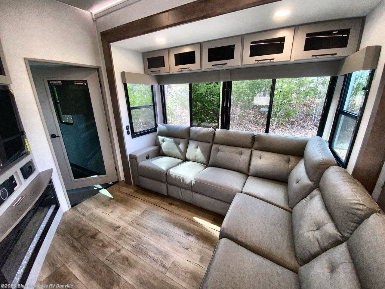 You can bring your toys with you wherever you go with any one of these Alliance RV Valor toy hauler fifth wheels! They are adventure-ready with a quality build from the walk on roof with seamless PVC roof covering to the commercial grade vinyl flooring and MorRyde CRE3000 suspension system. The Performance Running Gear package comes with a 101" wide-body benchmark chassis platform, 7,000 lb. Dexter axles, and a space enhancing drop frame storage compartment to pack in all your riding gear. You can even go off-gridding thanks to the Off the Grid Pack that has two 400-watt solar panels, generator prep, a 60-amp charge controller, and a 100-amp hour lithium iron phosphate battery. Some of the interior comforts you will enjoy are the hardwood cabinet doors and drawers, solid surface kitchen countertops, and commercial grade vinyl flooring with no carpet to make clean up a breeze. The Valor toy haulers are also the Master of 12 Volt with USB charging station throughout, a 12V refrigerator, and more 12-volt features to make camping hassle-free!