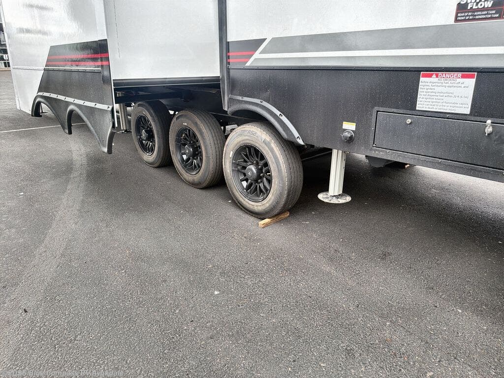 You can bring your toys with you wherever you go with any one of these Alliance RV Valor toy hauler fifth wheels! They are adventure-ready with a quality build from the walk on roof with seamless PVC roof covering to the commercial grade vinyl flooring and MorRyde CRE3000 suspension system. The Performance Running Gear package comes with a 101" wide-body benchmark chassis platform, 7,000 lb. Dexter axles, and a space enhancing drop frame storage compartment to pack in all your riding gear. You can even go off-gridding thanks to the Off the Grid Pack that has two 400-watt solar panels, generator prep, a 60-amp charge controller, and a 100-amp hour lithium iron phosphate battery. Some of the interior comforts you will enjoy are the hardwood cabinet doors and drawers, solid surface kitchen countertops, and commercial grade vinyl flooring with no carpet to make clean up a breeze. The Valor toy haulers are also the Master of 12 Volt with USB charging station throughout, a 12V refrigerator, and more 12-volt features to make camping hassle-free!