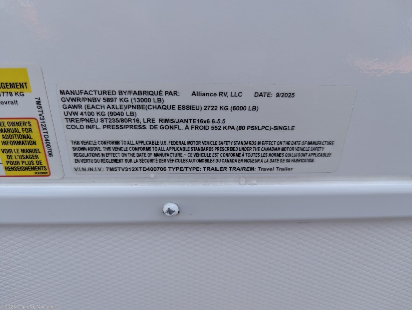 - ManufacturerAlliance Recreational Vehicles