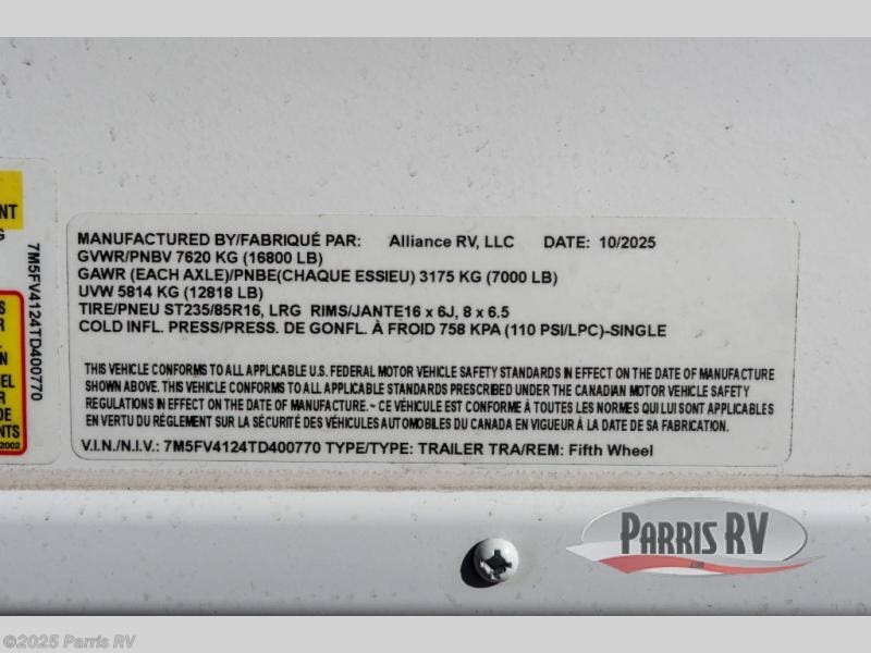 Request More Info on this 2026 Alliance RV Valor All-Access 35A14 Offered for sale by Parris RV