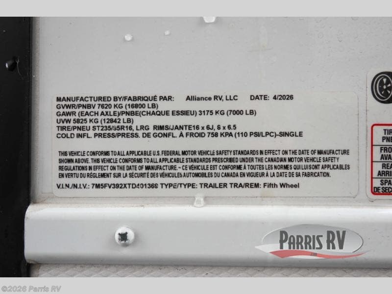 Request More Info on this 2026 Alliance RV Valor All-Access 35A14 Offered for sale by Parris RV