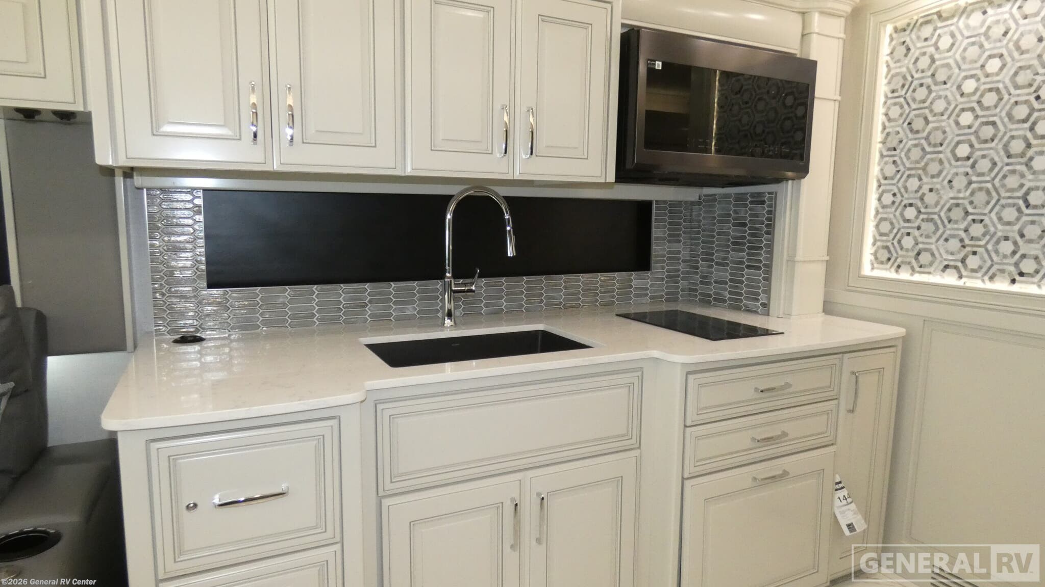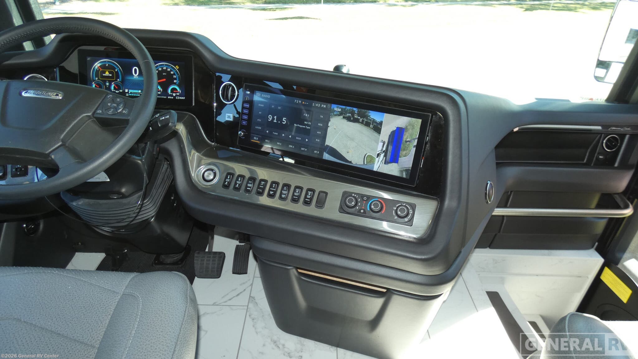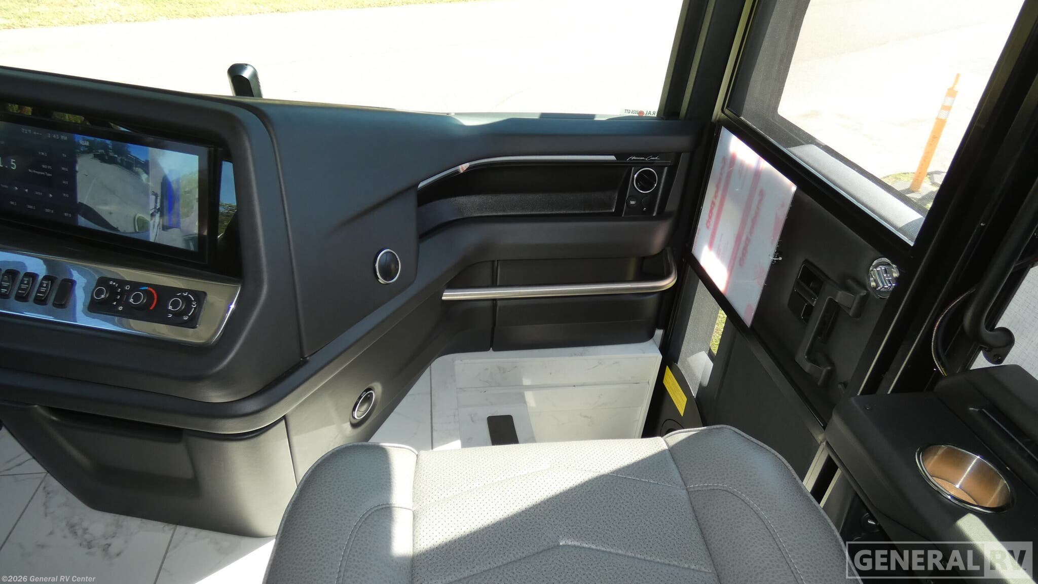 Experience the ultimate in luxury travel with the 2026 American Coach American Dream 45A. This magnificent diesel pusher is built on the robust Freightliner SLM Series chassis, powered by a mighty 605-horsepower Cummins I6 engine, ensuring a smooth and powerful ride. Its spacious interior features three slides, creating an expansive living area perfect for entertaining. The front living area is equipped with plush seating and a convertible sofa, inviting you to relax and enjoy the journey. The central kitchen is a culinary enthusiast's dream, boasting a full-size electric refrigerator, convection cooking, and a sleek two-burner cooktop. The elegant dining area with a free-standing dinette provides a perfect spot for family meals. Retreat to the luxurious center bedroom with a king-sized bed for a restful night's sleep. With washer and dryer prep, extended adventures are a breeze. The rear and center bath areas offer convenience and comfort, featuring a stylish shower with plastic and glass elements. This motorhome is designed for those who crave adventure without sacrificing the comforts of home. Discover this opulent RV and more at your nearest General RV dealership.