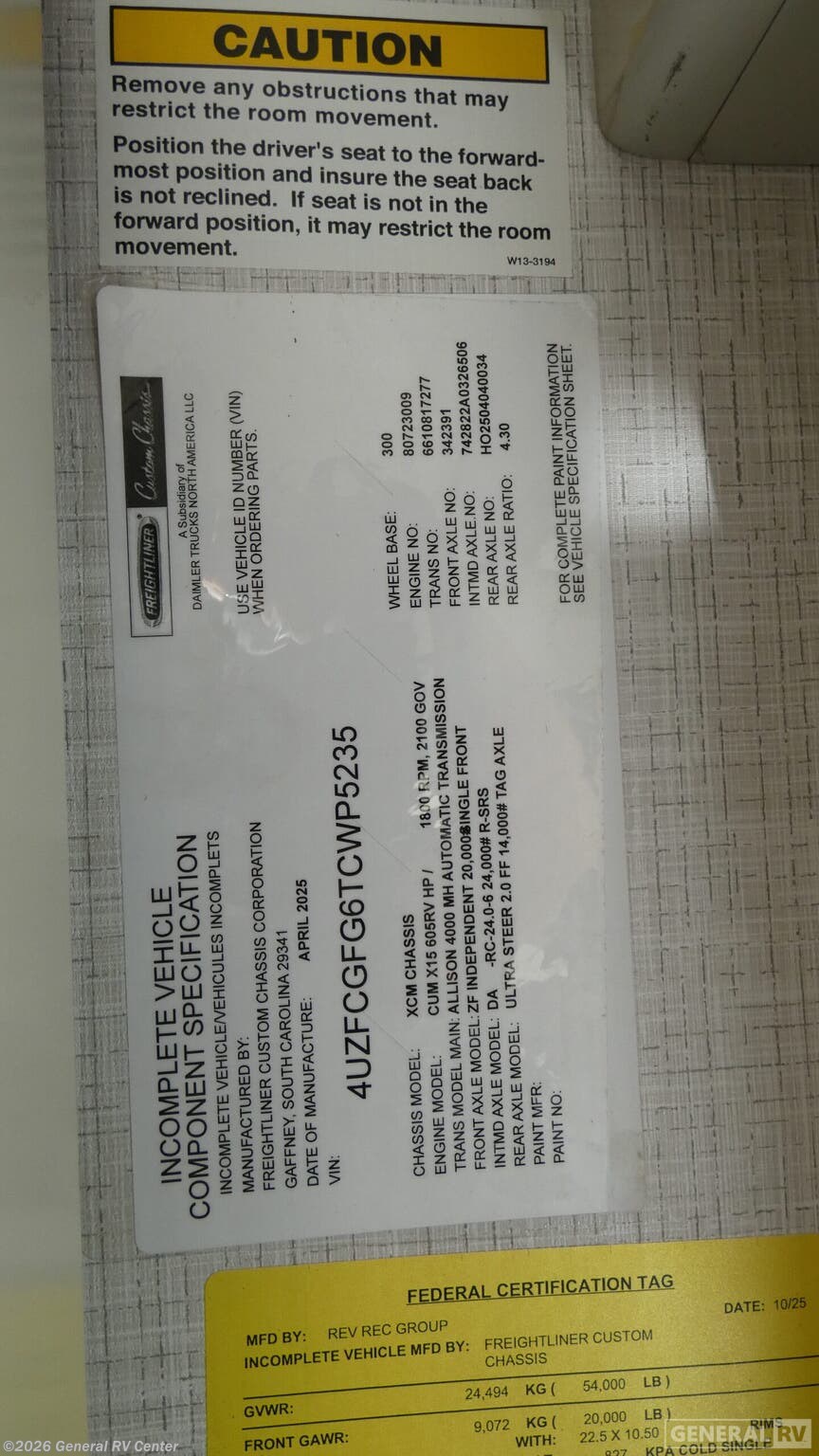 - VIN4UZFCGFG6TCWP5235