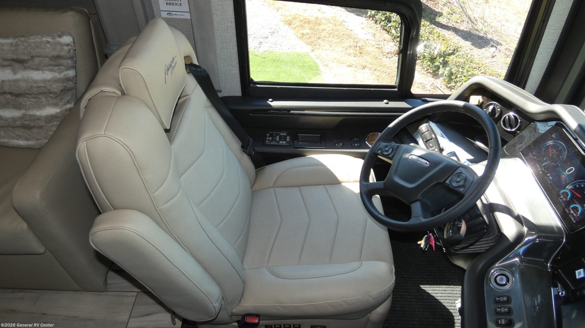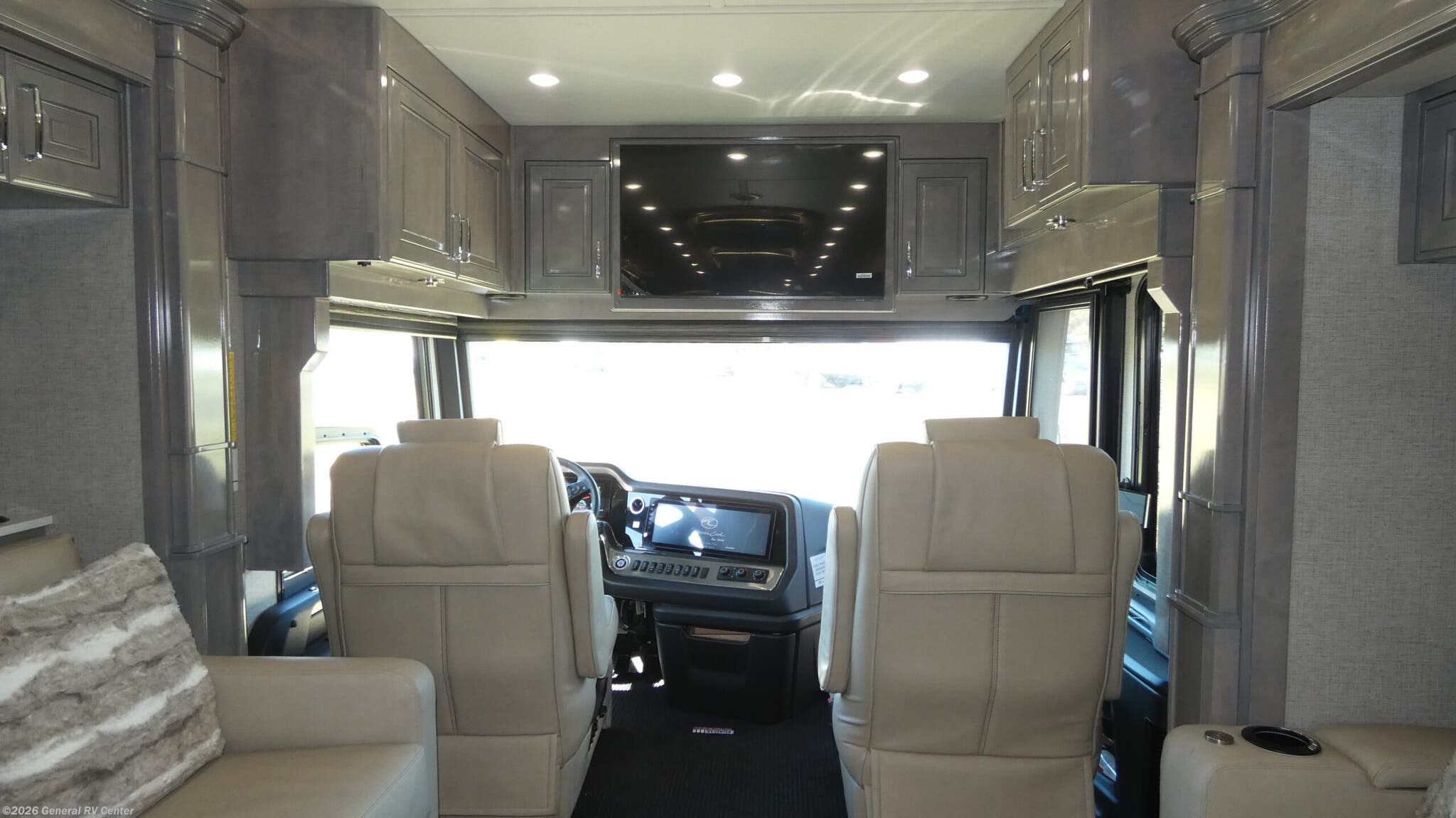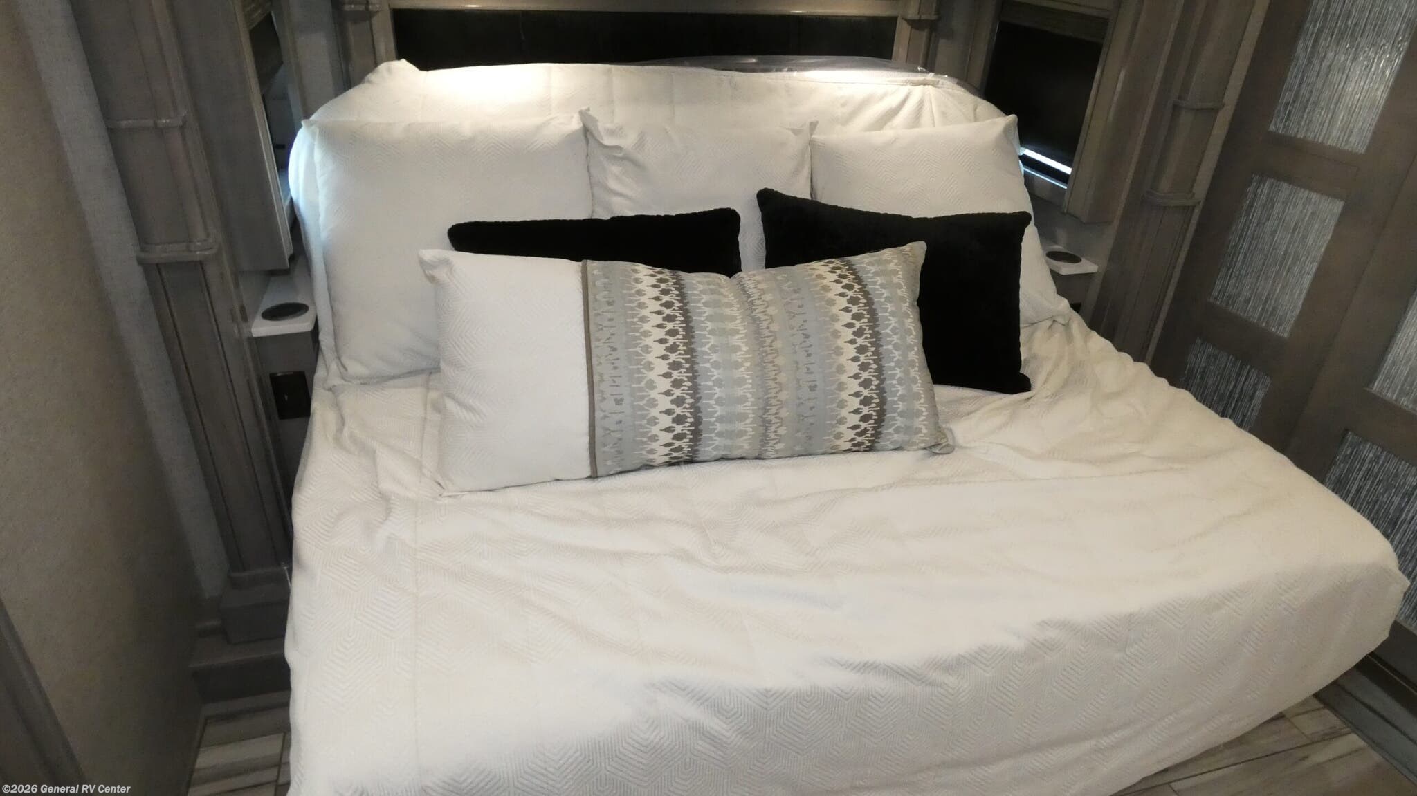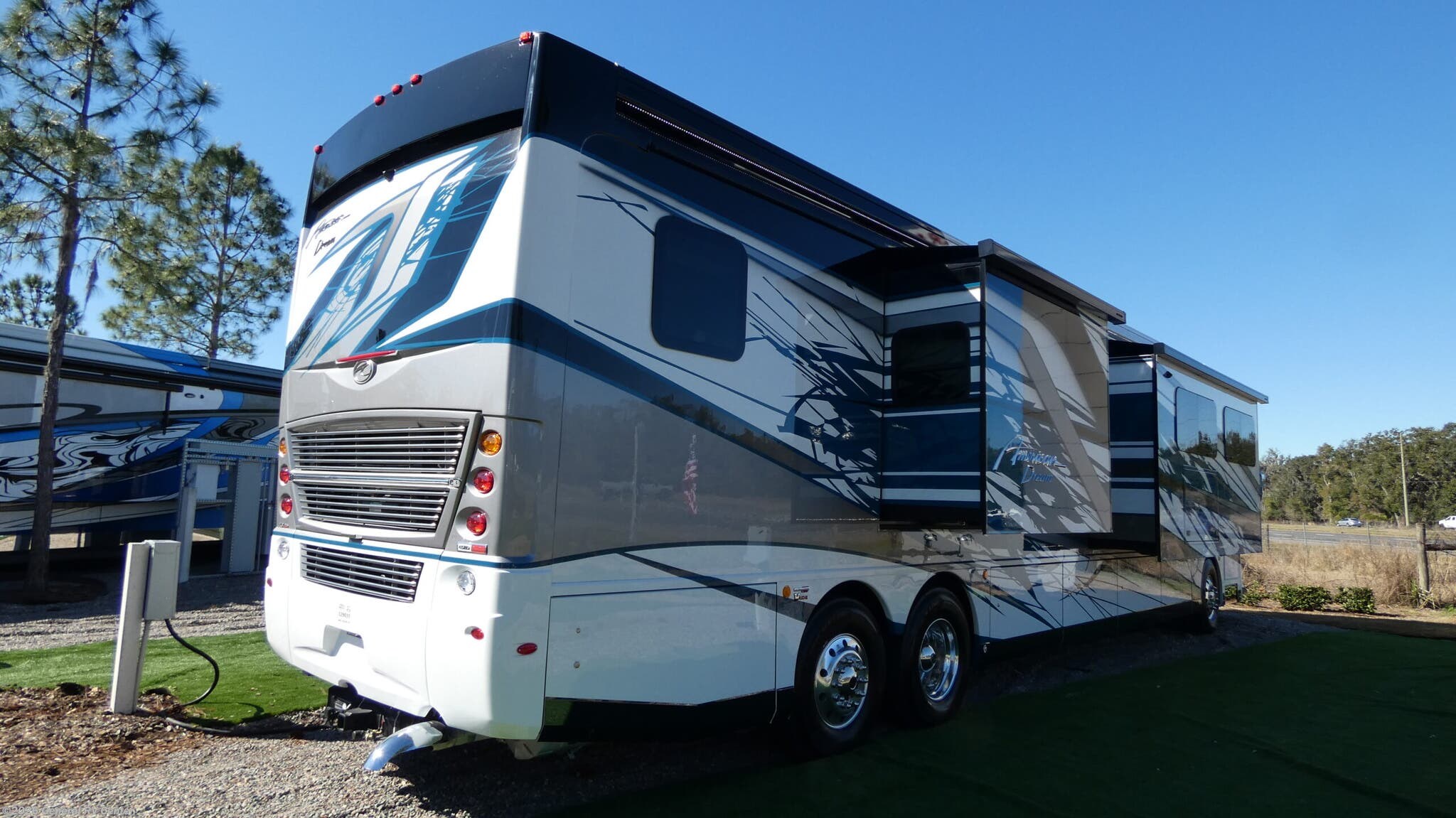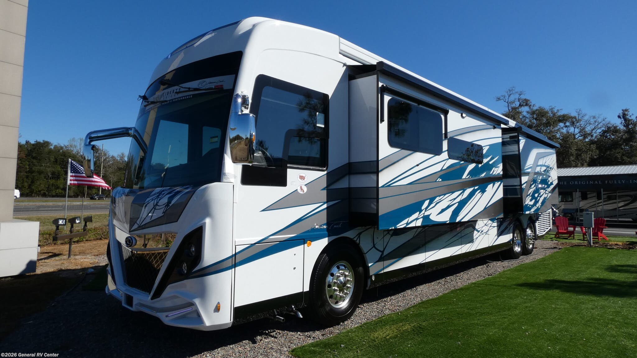 Experience the pinnacle of luxury travel with the 2026 American Coach American Dream 45P. This magnificent motorhome is designed to offer unparalleled comfort and style on the road. With its spacious interior, the 45P floorplan boasts a sophisticated front living area that invites relaxation, featuring a Total Electric W/Sofa Mattress and Motion Power Lounge, perfect for entertaining or unwinding after a day of adventure. The center kitchen is a culinary enthusiast's dream, equipped with a full-size electric refrigerator, convection cooking, and a two-burner cooktop, making meal preparation a breeze. Rest easy in the elegant center bedroom, where a King Encore Series Memory Foam Mattress awaits to provide you with the ultimate in restful sleep. The cleverly designed rear and center bath areas ensure privacy and convenience, with a washer/dryer prep for added practicality. This motorhome is built on a robust Freightliner SLM Series chassis and powered by a formidable 605-horsepower Cummins I6 Diesel Pusher engine, offering both power and reliability for your travels. With a 150-gallon fuel capacity and a towing capacity of up to 20,000 pounds, your journey is limited only by your imagination. The American Dream 45P is as functional as it is beautiful, featuring a 19.7 ft. powered retractable awning for outdoor enjoyment and ample storage throughout. Whether you're traversing the open road or setting up camp, this RV is your luxurious home away from home. To explore this exquisite motorhome further, visit your nearest General RV dealership and let your adventure begin.