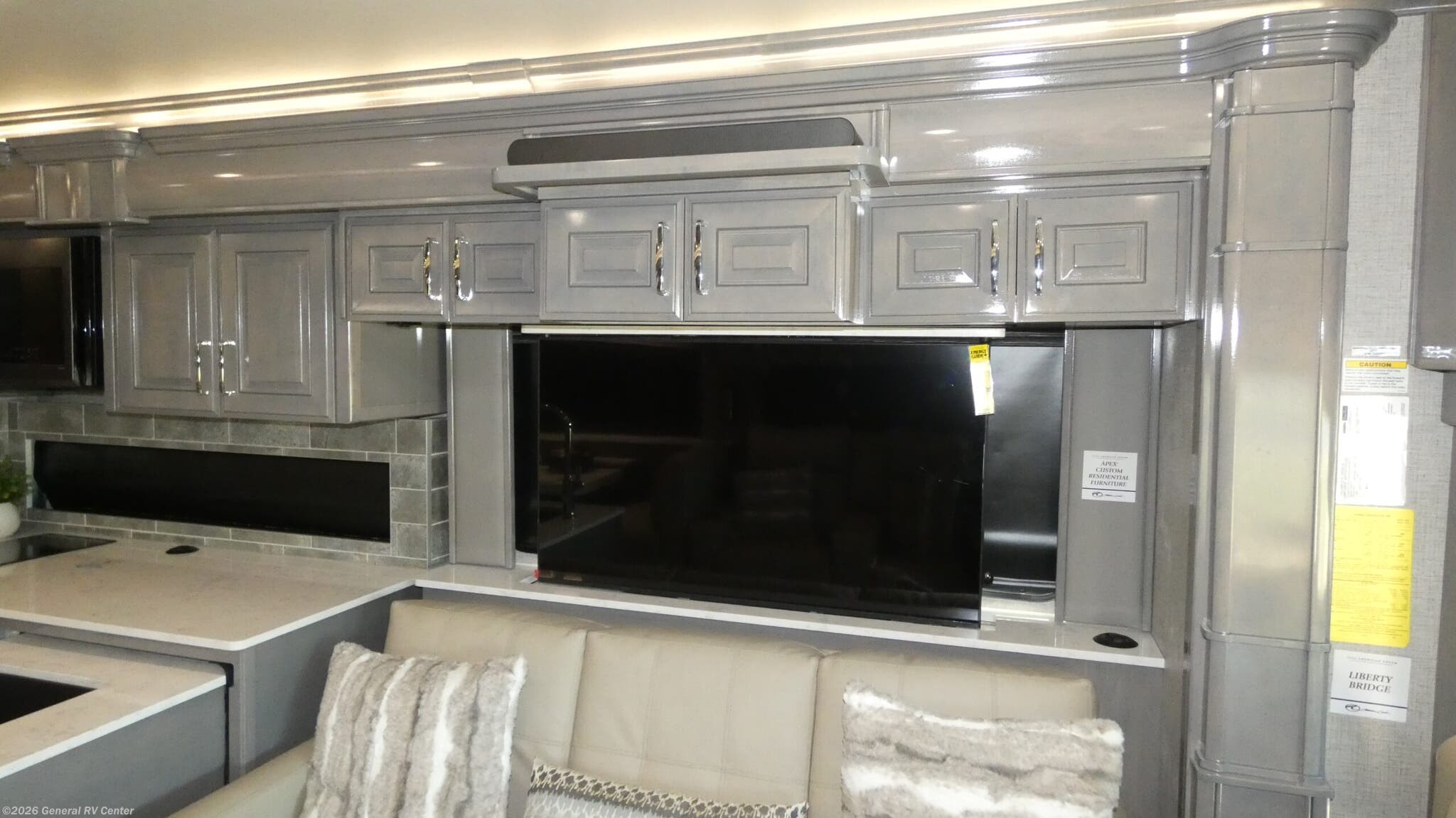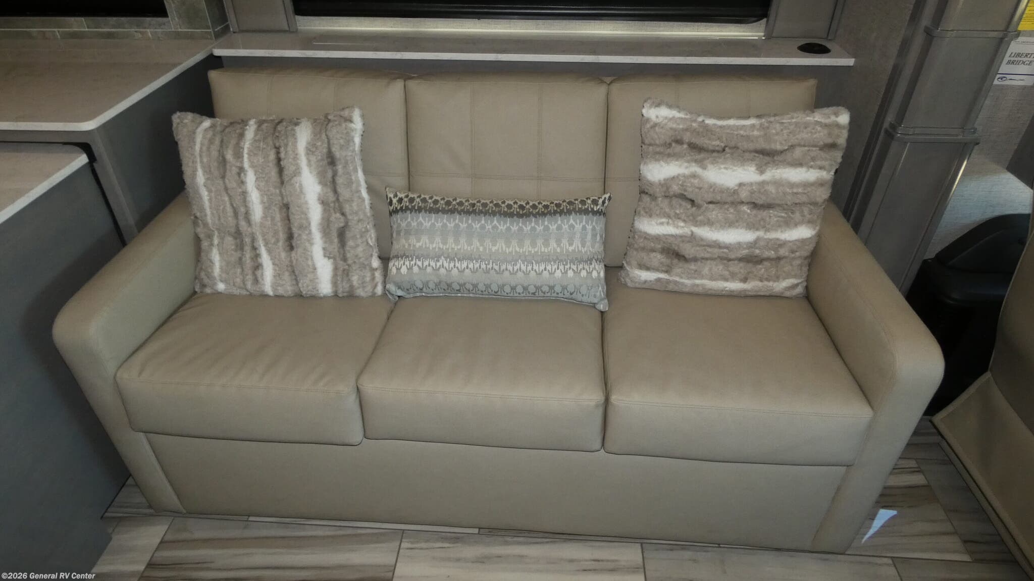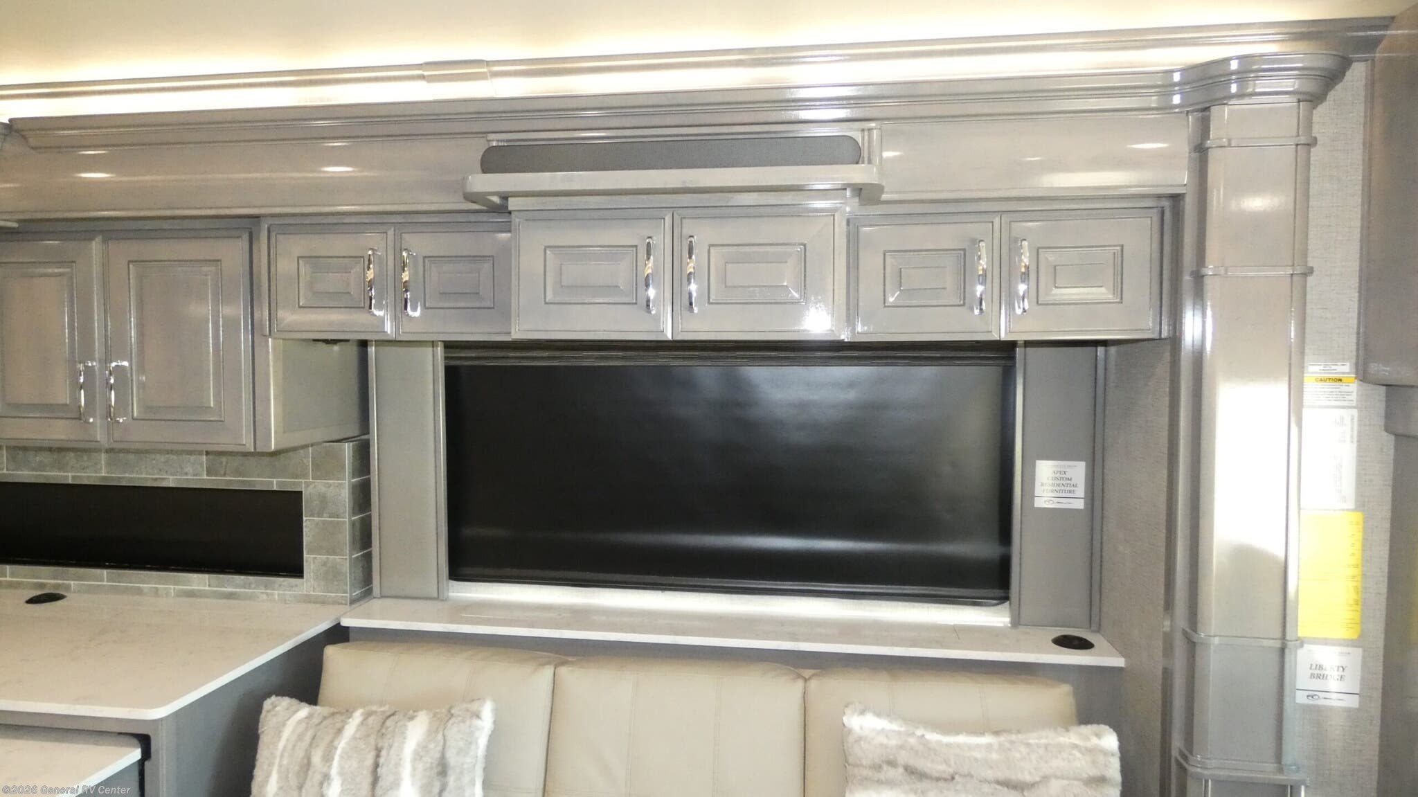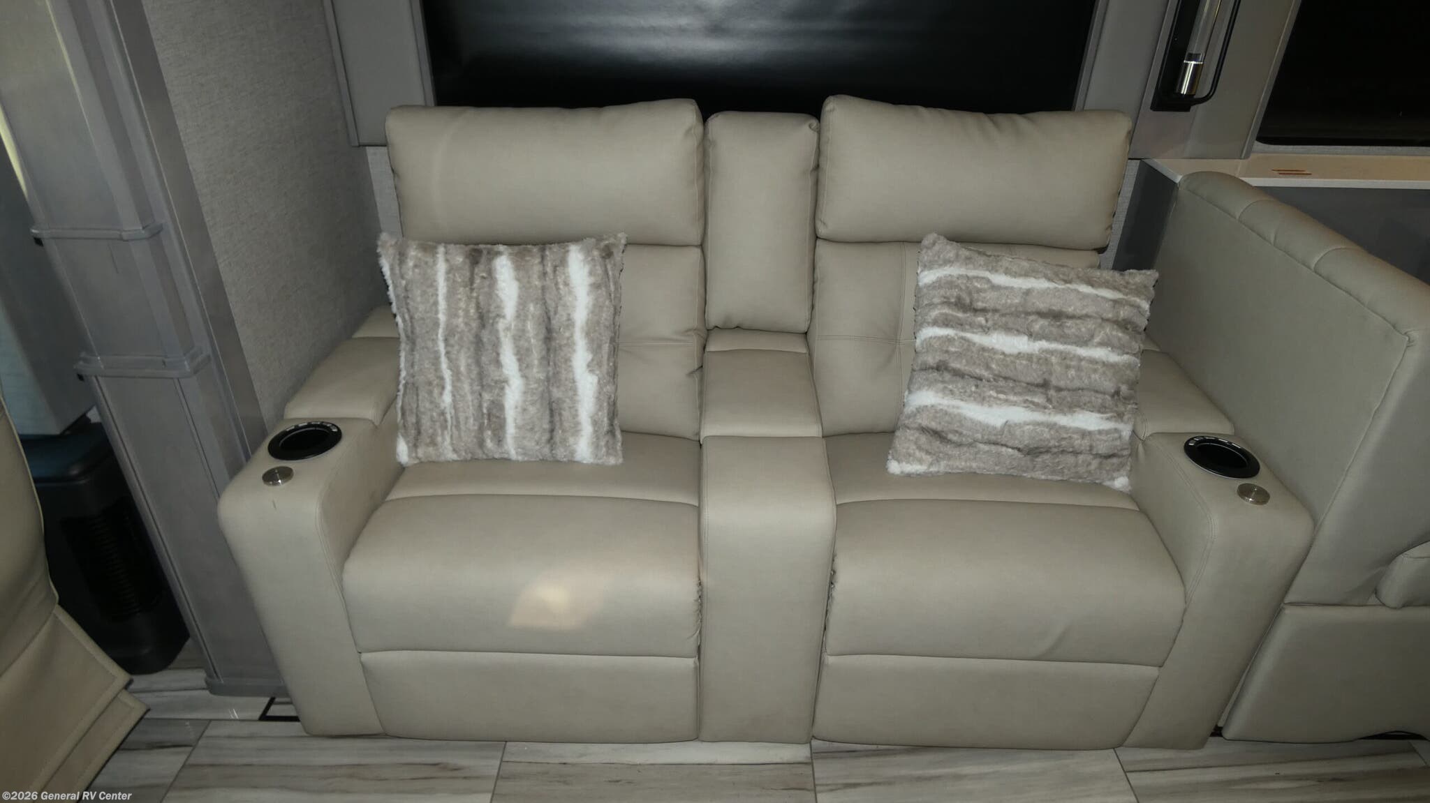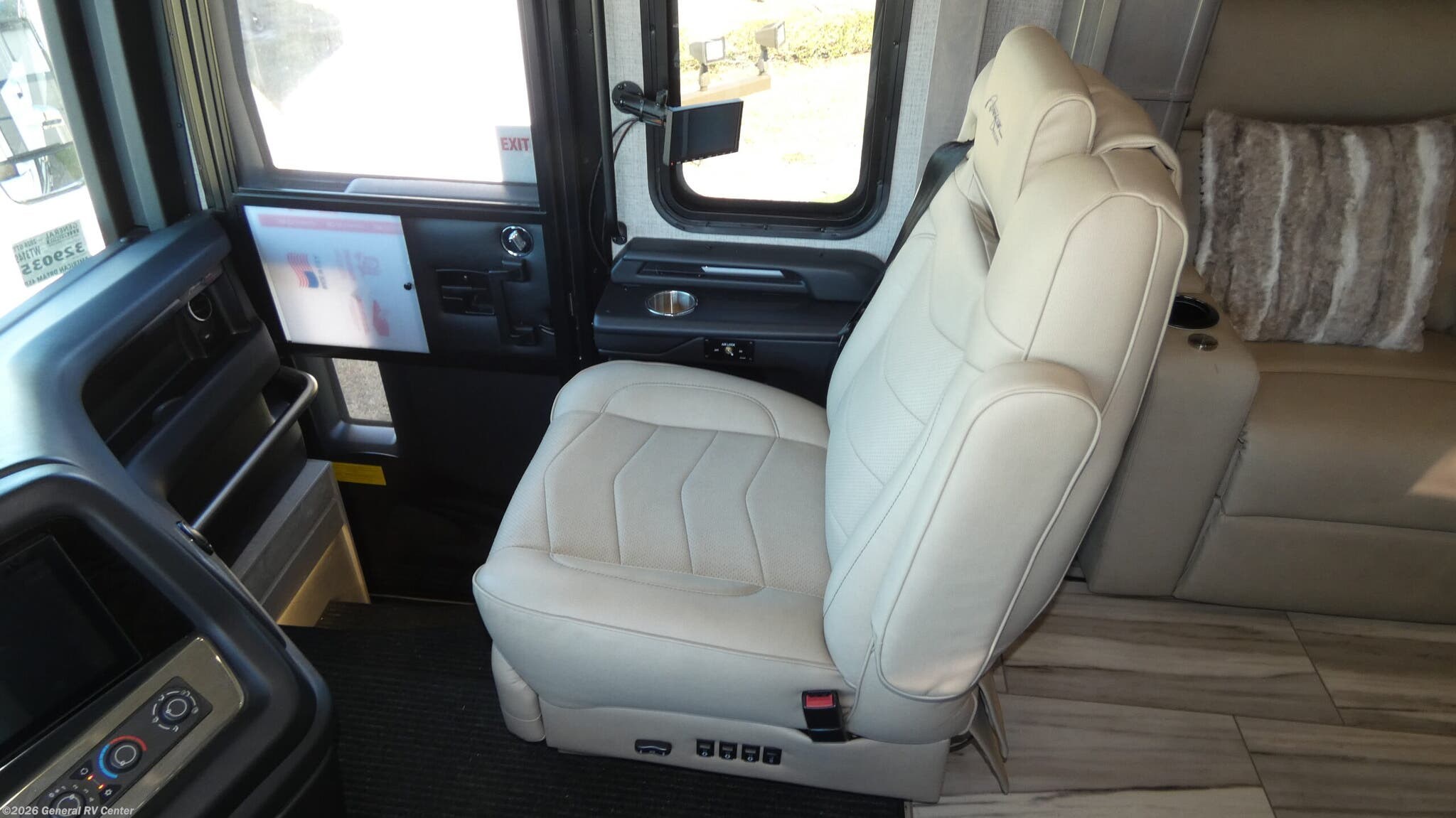 Experience the pinnacle of luxury travel with the 2026 American Coach American Dream 45P. This magnificent motorhome is designed to offer unparalleled comfort and style on the road. With its spacious interior, the 45P floorplan boasts a sophisticated front living area that invites relaxation, featuring a Total Electric W/Sofa Mattress and Motion Power Lounge, perfect for entertaining or unwinding after a day of adventure. The center kitchen is a culinary enthusiast's dream, equipped with a full-size electric refrigerator, convection cooking, and a two-burner cooktop, making meal preparation a breeze. Rest easy in the elegant center bedroom, where a King Encore Series Memory Foam Mattress awaits to provide you with the ultimate in restful sleep. The cleverly designed rear and center bath areas ensure privacy and convenience, with a washer/dryer prep for added practicality. This motorhome is built on a robust Freightliner SLM Series chassis and powered by a formidable 605-horsepower Cummins I6 Diesel Pusher engine, offering both power and reliability for your travels. With a 150-gallon fuel capacity and a towing capacity of up to 20,000 pounds, your journey is limited only by your imagination. The American Dream 45P is as functional as it is beautiful, featuring a 19.7 ft. powered retractable awning for outdoor enjoyment and ample storage throughout. Whether you're traversing the open road or setting up camp, this RV is your luxurious home away from home. To explore this exquisite motorhome further, visit your nearest General RV dealership and let your adventure begin.
