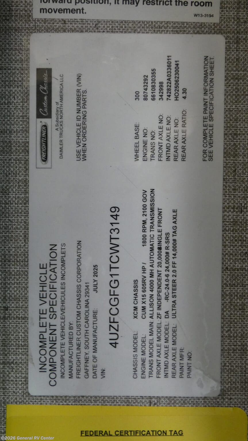 - VIN4UZFCGFG1TCWT3149