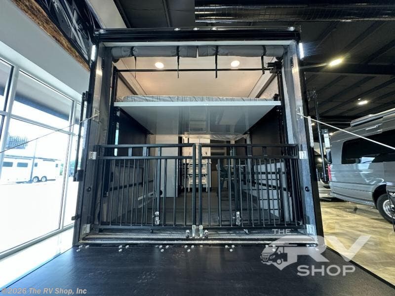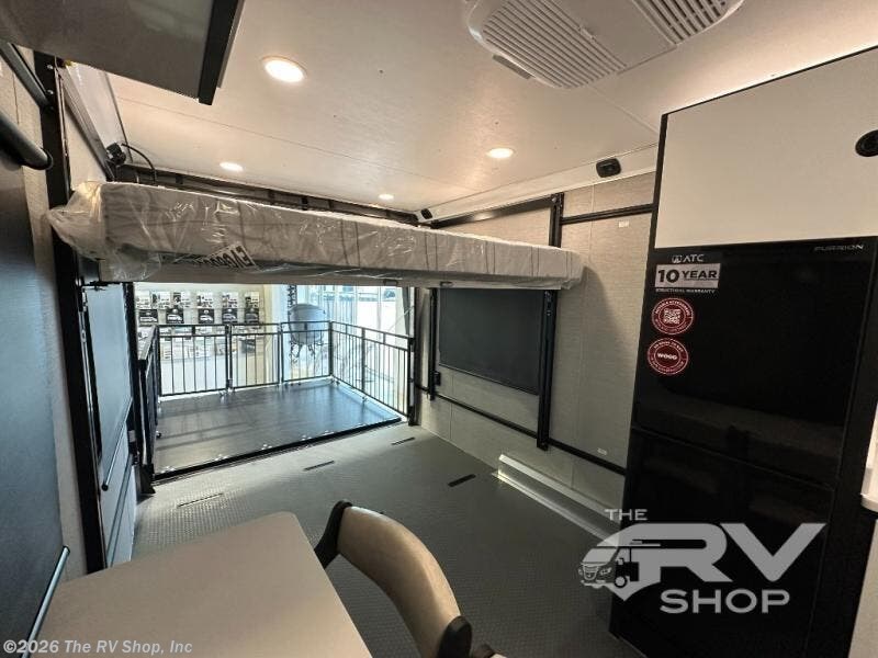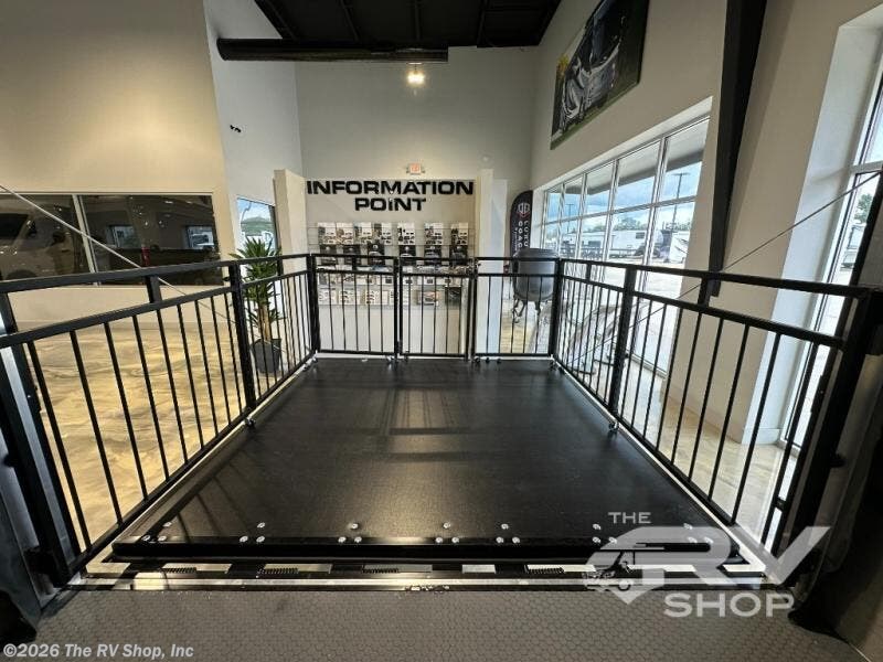 With any PLA 450 toy hauler travel trailer by ATC Trailers, you will enjoy lightweight towing and a configurable garage space for your toys, gear, and more! The all-aluminum and composite construction features no wood so you won't have to worry about rot, and the All-Weather Protection Package means you can extend your camping season. There is a 200-watt solar panel with a solar port, a heated lithium battery, plus 12V outlets to keep your adventures going. Outside, you'll find storage for your gear, a power awning with a light strip, sleek frameless dual pane tinted windows, and more convenient features. The interior is just as accommodating with decorative backsplash, configurable furniture track system, blackout roller shades, and residential solid surface countertops!