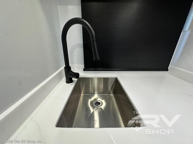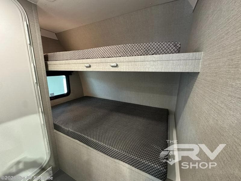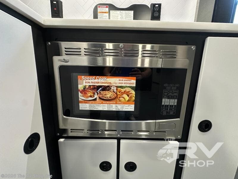 Grab your riding helmet and load up your bikes in this toy hauler! Once your toys are unloaded from the cable-less ramp door with non-slip tread, you can relax on the sofa here or make lunch in the kitchen. There is a flush mount two burner LP cooktop and a convection microwave, plus a 12V refrigerator to store leftovers. The wet bath includes a shower and porcelain toilet so you can freshen up after a trail ride, and the front bunk beds with reading lamps will let you stay up late with a good book!