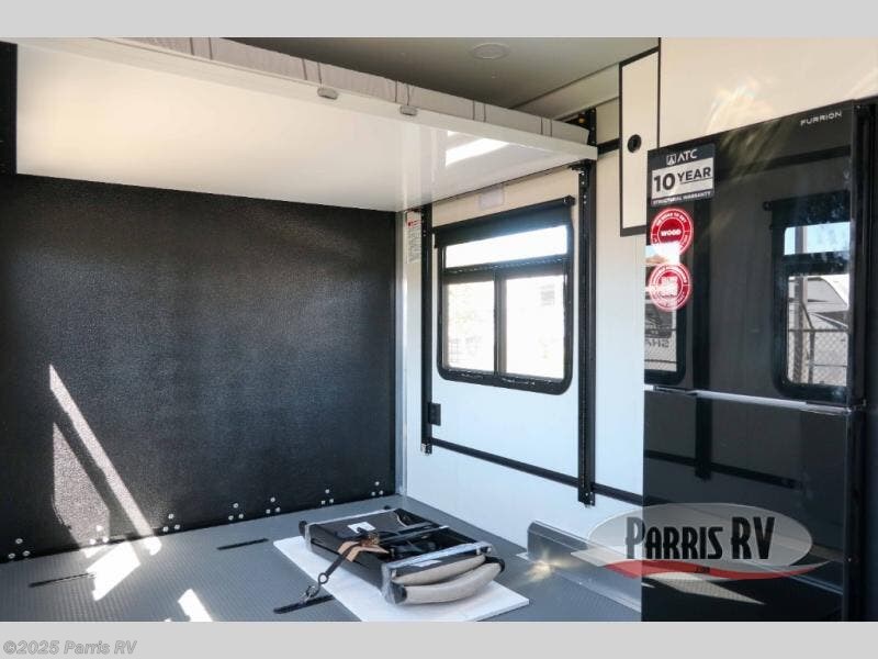 With any PLA 450 toy hauler travel trailer by ATC Trailers, you will enjoy lightweight towing and a configurable garage space for your toys, gear, and more! The all-aluminum and composite construction features no wood so you won't have to worry about rot, and the All-Weather Protection Package means you can extend your camping season. There is a 200-watt solar panel, a 100-watt inverter, and 120V/USB outlets to keep your adventures going. Outside, you'll find storage for your gear, a power awning with a light strip, sleek frameless dual pane windows, and more convenient features. The interior is just as accommodating with aluminum cabinets, dimmable can ceiling lights, configurable furniture track system, and solid surface countertops!
