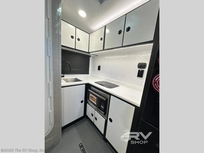 If you're ready to escape your busy weeks for weekends at the lake, this toy hauler is for you! Your kayaks will fit perfectly when you use the space all the way up to the front kitchen, and there is a cable-less rear ramp door for easy unloading. There is also an Airline Track tie-down system to keep your gear secure, and an optional Happijac queen bed can be added if you need additional sleeping space other than the sleeper sofa. The front kitchen includes a two-burner cooktop, a convection microwave, and a 12V refrigerator to keep cold items fresh.