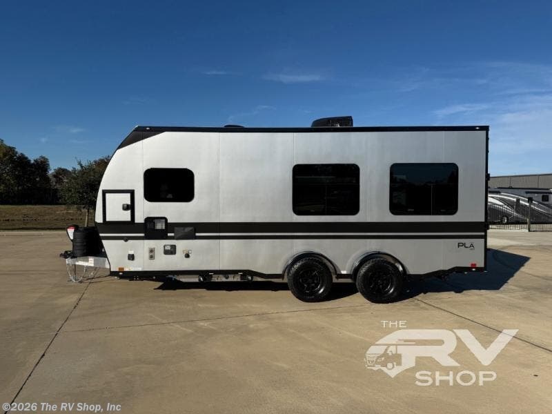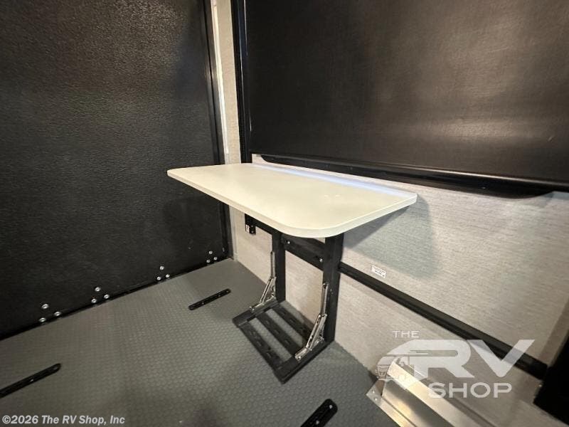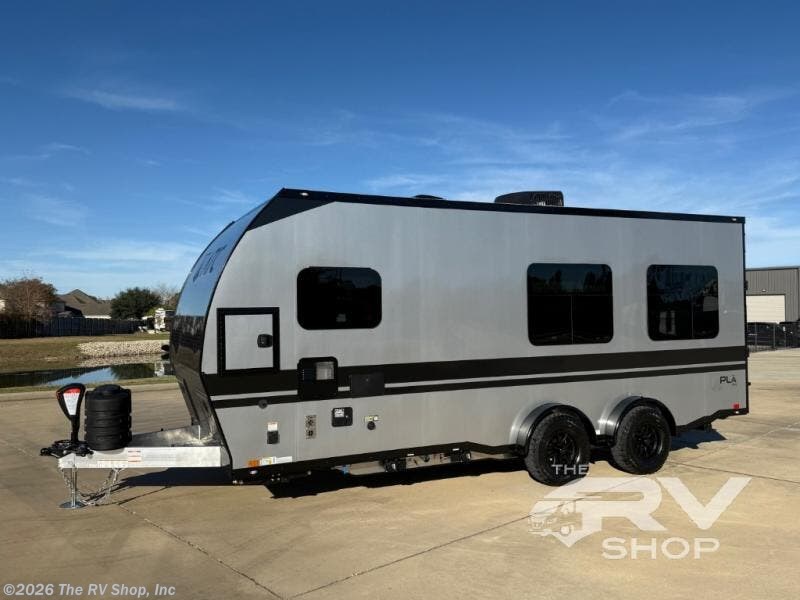 With any PLA 450 toy hauler travel trailer by ATC Trailers, you will enjoy lightweight towing and a configurable garage space for your toys, gear, and more! The all-aluminum and composite construction features no wood so you won't have to worry about rot, and the All-Weather Protection Package means you can extend your camping season. There is a 200-watt solar panel, a 100-watt inverter, and 120V/USB outlets to keep your adventures going. Outside, you'll find storage for your gear, a power awning with a light strip, sleek frameless dual pane windows, and more convenient features. The interior is just as accommodating with aluminum cabinets, dimmable can ceiling lights, configurable furniture track system, and solid surface countertops!