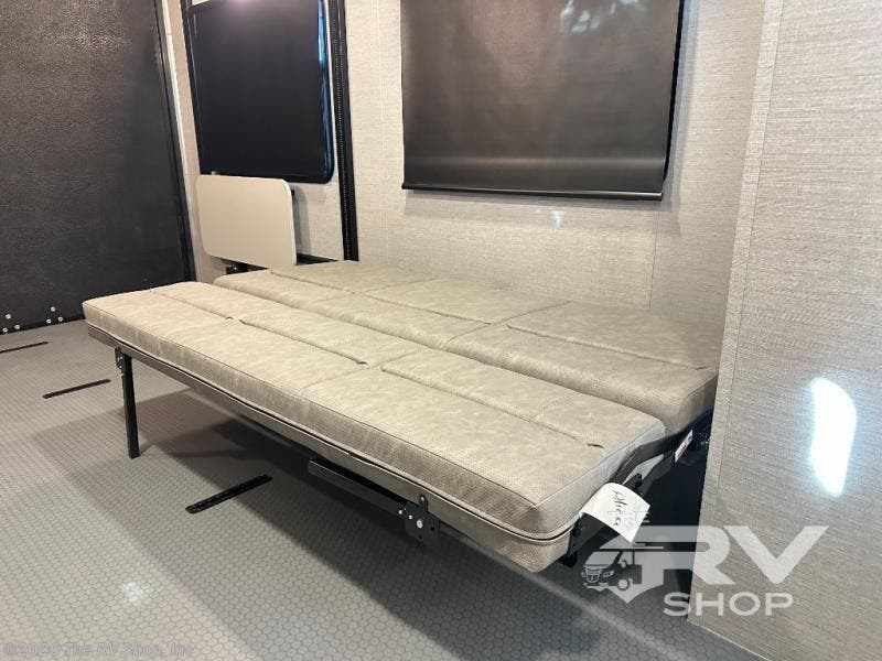 If you're ready to escape your busy weeks for weekends at the lake, this toy hauler is for you! Your kayaks will fit perfectly when you use the space all the way up to the front kitchen, and there is a cable-less rear ramp door for easy unloading. There is also an Airline Track tie-down system to keep your gear secure, and an optional Happijac queen bed can be added if you need additional sleeping space other than the sleeper sofa. The front kitchen includes a two-burner cooktop, a convection microwave, and a 12V refrigerator to keep cold items fresh.