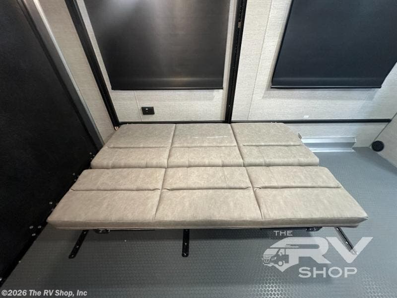 If you're ready to escape your busy weeks for weekends at the lake, this toy hauler is for you! Your kayaks will fit perfectly when you use the space all the way up to the front kitchen, and there is a cable-less rear ramp door for easy unloading. There is also an Airline Track tie-down system to keep your gear secure, and an optional Happijac queen bed can be added if you need additional sleeping space other than the sleeper sofa. The front kitchen includes a two-burner cooktop, a convection microwave, and a 12V refrigerator to keep cold items fresh.
