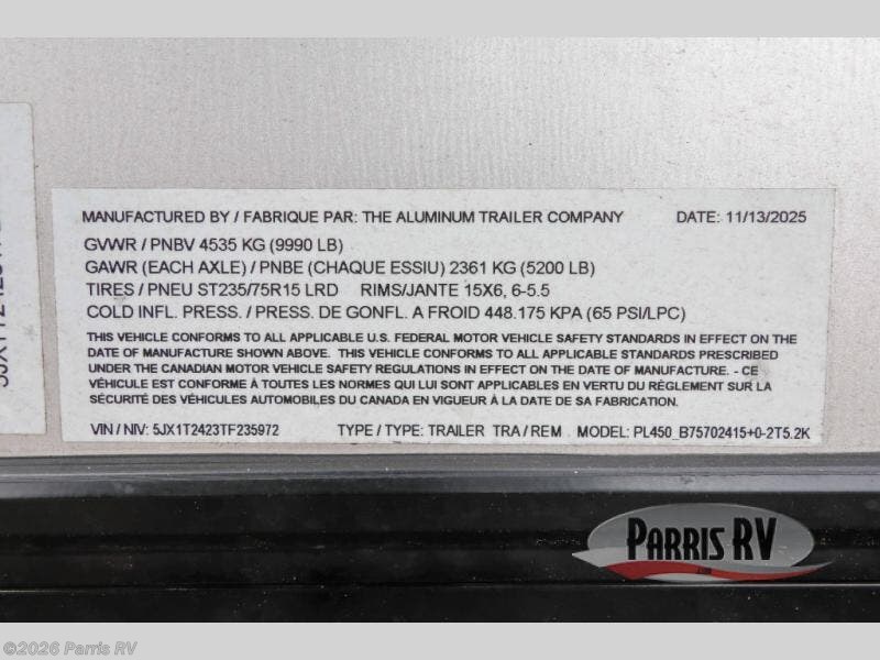 Request More Info on this 2026 ATC Pla 450 2415 Offered for sale by Parris RV