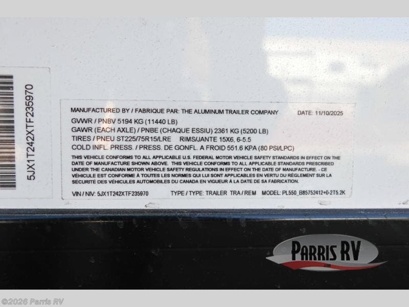 Request More Info on this 2026 ATC Pla 550 2412 Offered for sale by Parris RV