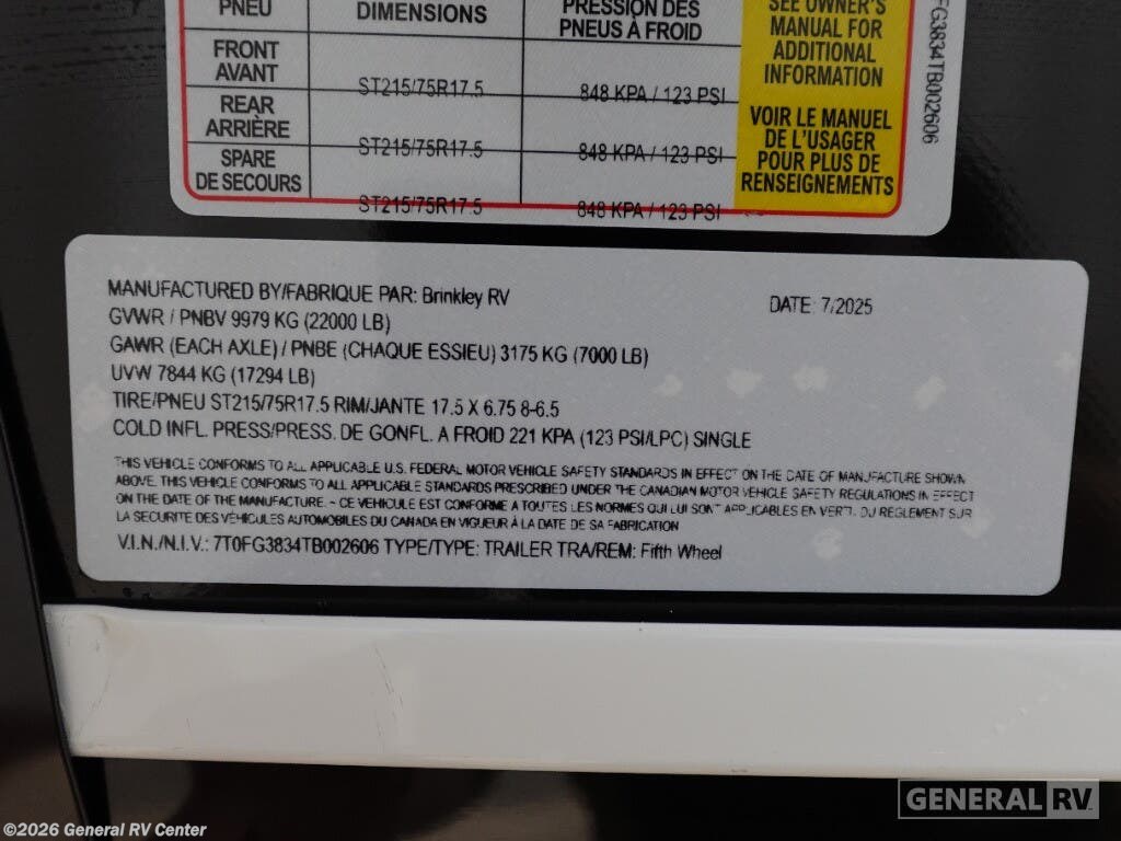 2026 Brinkley RV Model G 3250 Specifications