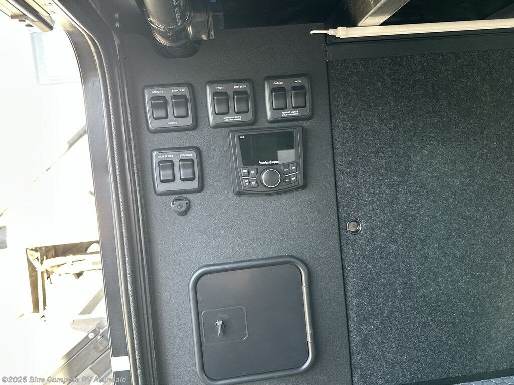 With any Model G toy hauler fifth wheel by Brinkley you will enjoy luxurious amenities, tons of storage space, and innovative features that have been developed and tested in the real world. Durable construction includes an industry leading PDI process, an industry best insulation package, and reinforced and walkable slide roofs. Some of the exterior features you'll find are a 3-way pass-through with a multi-functional flip-up bulkhead wall, under I-beam storage, a MAX-Vision reverse lighting system, and a low-maintenance roof to name a few. A Rockford Fosgate audio system comes standard, along with a Full app-based coach control system (iOS & Android) that lets you control your fifth wheel's functions right from your mobile device. You will find the solar system with a designated storage area to be ultra convenient, plus there is a FlexPower 5500 with a dual fuel inverter generator for all your power needs. Head inside to find a residential interior with Brinkley's CraftSense wood trim construction, floating entrance steps, integrated window screens and insulated blackout blinds, and residential solid surface countertops plus backsplash. You will also enjoy the neon shower lighting and recessed medicine cabinets in the bath, plus motion activated LED bed lights and dual bedside outlets in the bedroom. Choose a Model G toy hauler fifth wheel to experience all the luxury it has to offer!