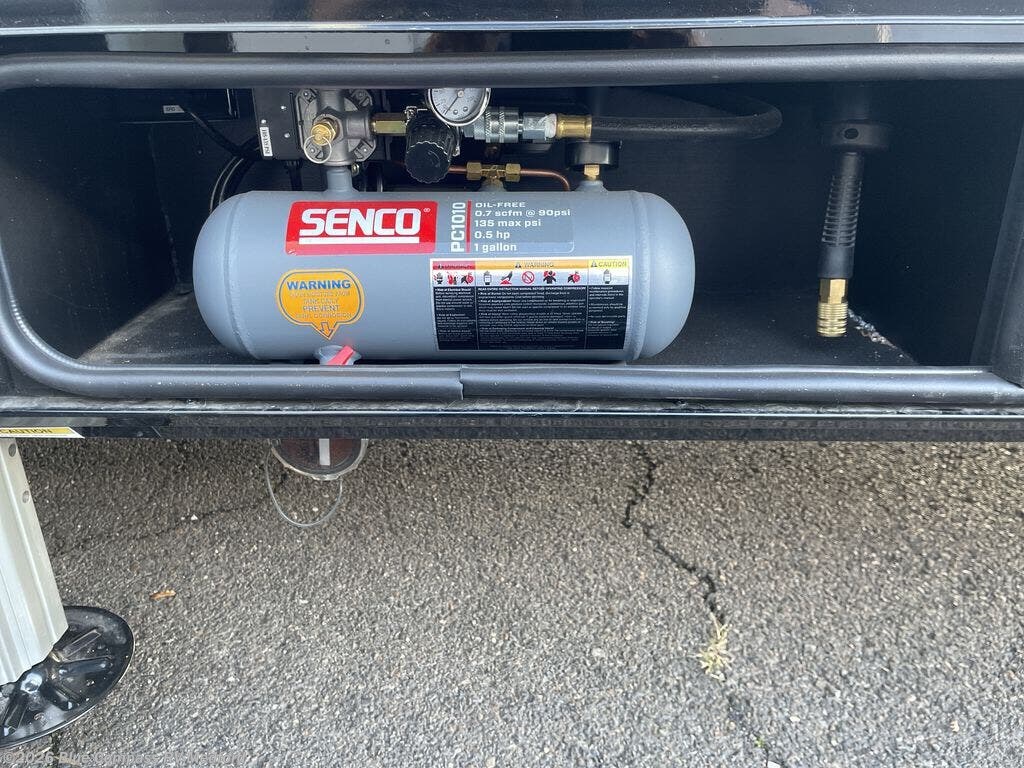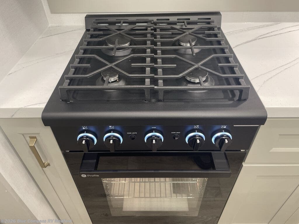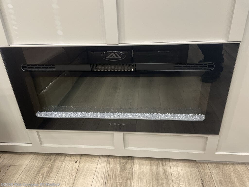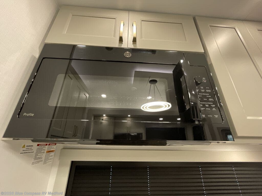 You can't imagine how much this toy hauler has to offer! The garage/outdoor kitchen/office space will allow you to utilize the garage how you need it, plus there is an adjustable tie-down system, as well as a loft for storage and a twin bed to sleep more campers! The garage patio with a 1,500 lb. capacity is another feature you are sure to love, especially with its own awning to keep you protected from the elements. Head to the kitchen to prepare meals with a 24" GE oven with a four burner range, a GE microwave with an air fryer, plus a spacious GE Energy Star 19 cu. ft. refrigerator. The island with two stools will let others visit with you while you cook, and there are even dog bowls to easily feed Frodo. You'll find the convertible dining table/L-desk will be accommodating since it can be use to dine at, and to get some work done. You may just find yourselves spending most of your time on the L-sofa in front of the entertainment center with a TV, fireplace and storage. A full bath is up front by the bedroom, and here you'll find a 30" x 42" shower and and pull-out linen storage with a trash bin to keep towels ready to use. After a day outdoors you'll love nothing more than coming back to your own bedroom with a king bed slide out, TV, a walk-in closet, and many more storage spaces. And we haven't even touched on the exterior features, like the 3-way pass-through storage, three power awnings, an air compressor to fill up tires, and the list goes on and on! This is a pre-production preview, all features and layout placement subject to change.
