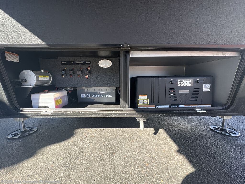 With any Model G toy hauler fifth wheel by Brinkley you will enjoy luxurious amenities, tons of storage space, and innovative features that have been developed and tested in the real world. Durable construction includes an industry leading PDI process, an industry best insulation package, and reinforced and walkable slide roofs. Some of the exterior features you'll find are a 3-way pass-through with a multi-functional flip-up bulkhead wall, under I-beam storage, a MAX-Vision reverse lighting system, and a low-maintenance roof to name a few. A Rockford Fosgate audio system comes standard, along with a OneControl app system that lets you control your fifth wheel's functions right from your mobile device. You will find the solar system with a designated storage area to be ultra convenient, plus there is a FlexPower 5500 with a dual fuel inverter generator for all your power needs. Head inside to find a residential interior with Brinkley's CraftSense wood trim construction, floating entrance steps, integrated window screens and insulated blackout blinds, and residential solid surface countertops plus backsplash. You will also enjoy the neon shower lighting and recessed medicine cabinets in the bath, plus motion activated LED bed lights and dual bedside outlets in the bedroom. Choose a Model G toy hauler fifth wheel to experience all the luxury it has to offer!
