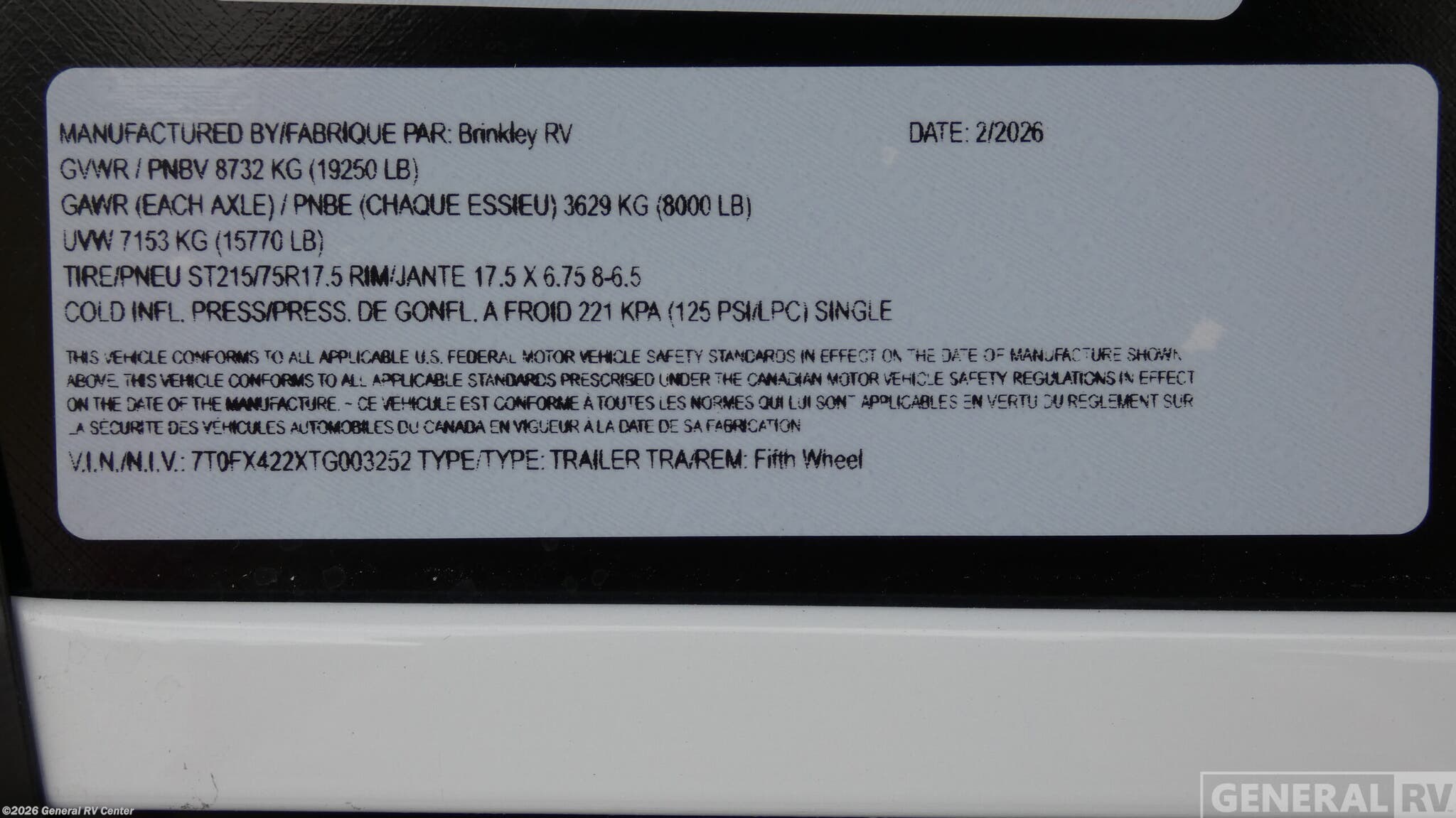 Looking to buy a 2026 Brinkley RV Model G Fifth Wheel RV?
