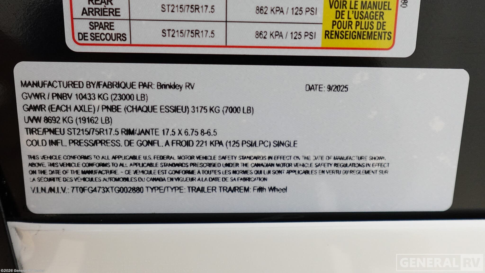 Looking to buy a 2026 Brinkley RV Model G Fifth Wheel RV?