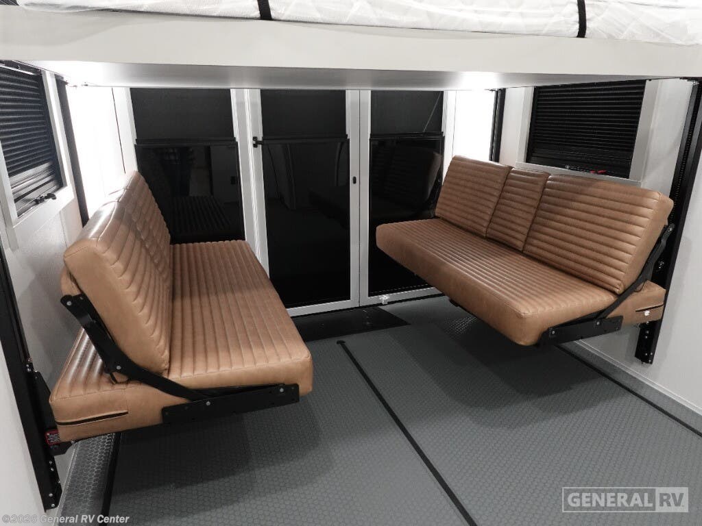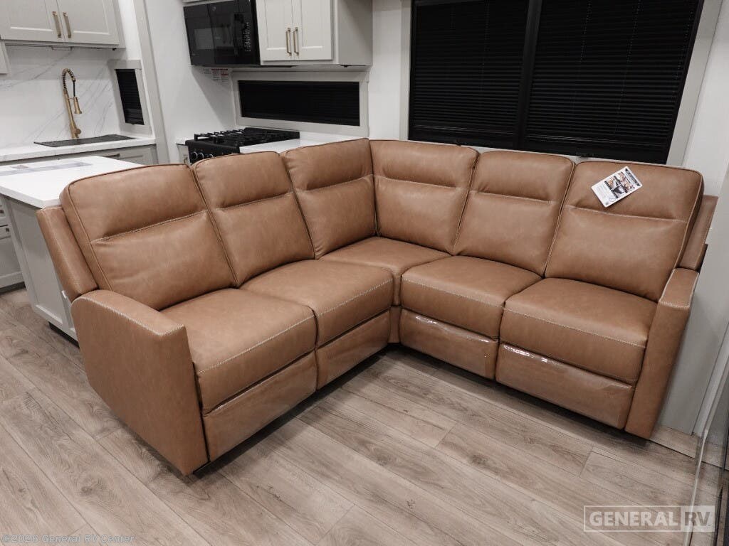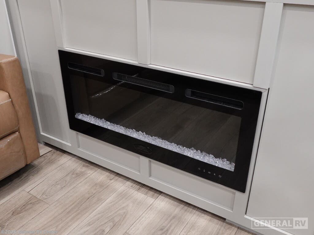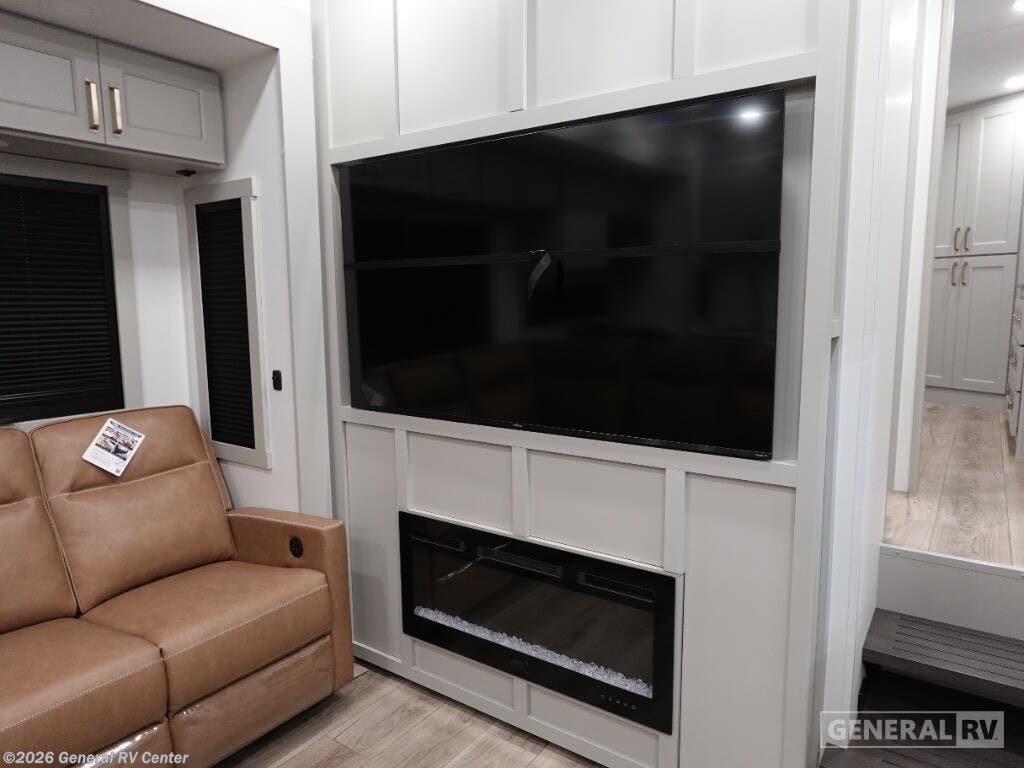 Step into the future of RV living with the 2025 Brinkley Model G 3950. This luxurious fifth wheel is designed for those who crave adventure without sacrificing comfort. With its spacious layout, it comfortably sleeps up to nine people, thanks to a king bed, a queen bed, and a convertible option, making it perfect for family getaways or trips with friends. The center kitchen is a culinary enthusiast's dream, equipped with a full-size electric refrigerator and a four-burner cooktop, complemented by convection cooking. Whether you're hosting a dinner or enjoying a quiet night in, the stylish center living area with its cozy fireplace sets the perfect ambiance. The Model G 3950 is not just about luxury; it's also about convenience and functionality. The front bedroom offers a serene retreat with ample storage, while the center bath with a plastic/glass shower ensures you have all the comforts of home. With a washer and dryer included, long trips are a breeze. Three powered retractable awnings provide ample outdoor space for relaxation, and the 14' 6" garage with dovetail storage is ideal for your adventure gear. With impressive water capacities and robust construction, this RV is ready to take you wherever your heart desires. For more details or to experience this marvel in person, visit your nearest General RV dealership.