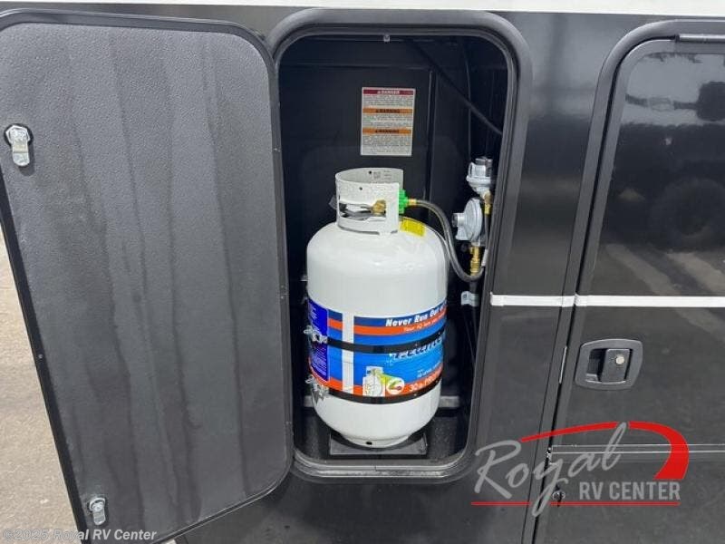 Whether you use this toy hauler to haul your favorite ride-on toys or as a mobile office, you're sure to love every inch of it! The 14' separate garage includes a Fold-N-Stow table and independent dual sofas, along with a full bath and a loft/storage with a twin bed for more sleeping space. The middle kitchen is every chef's dream with its GE appliances, kitchen island, and convenient features, such as pull-out trash bins and a cutting board, a pull-down knife rack and utensil tray, and a pull-out pantry/utility closet! Right next to the kitchen is the living room with a L-sofa with four modes, a 65" Phillips Smart TV and a fireplace, plus a convertible dining table/L-desk where you can dine or get some work done. You'll love the second full bath up front close to the private bedroom, and here, you'll find a king bed slide out, under-bed storage drawers and motion lights, a walk-in closet with cordless vacuum prep, and a sliding dresser top with hidden storage for valuables. There is also washer and dryer prep in the bedroom and garage, making this toy hauler full-time capable!