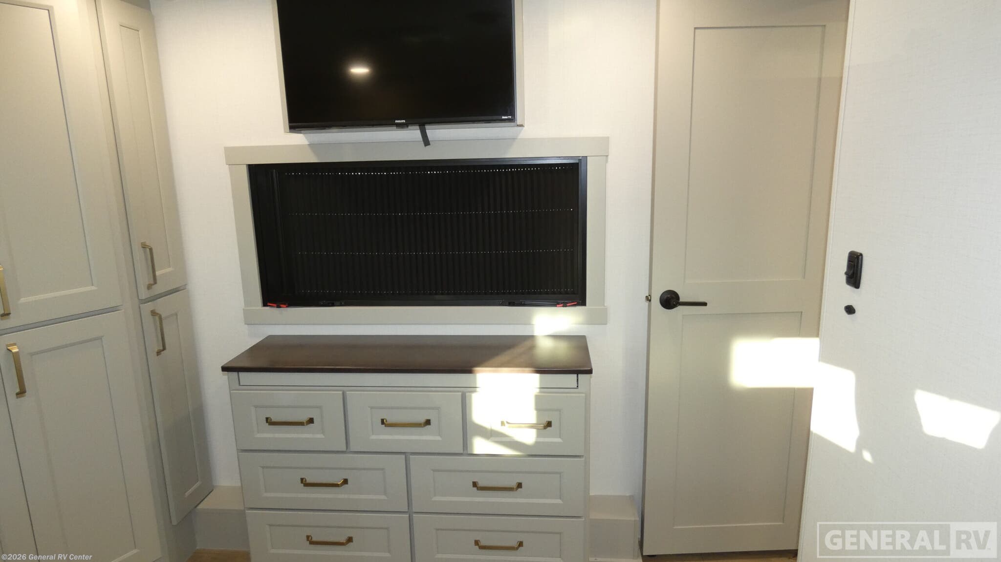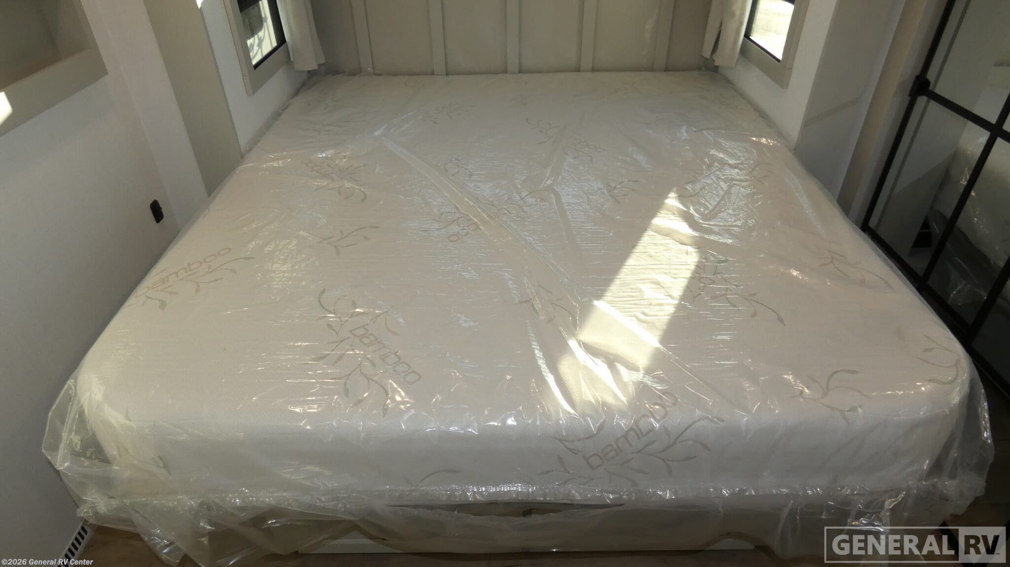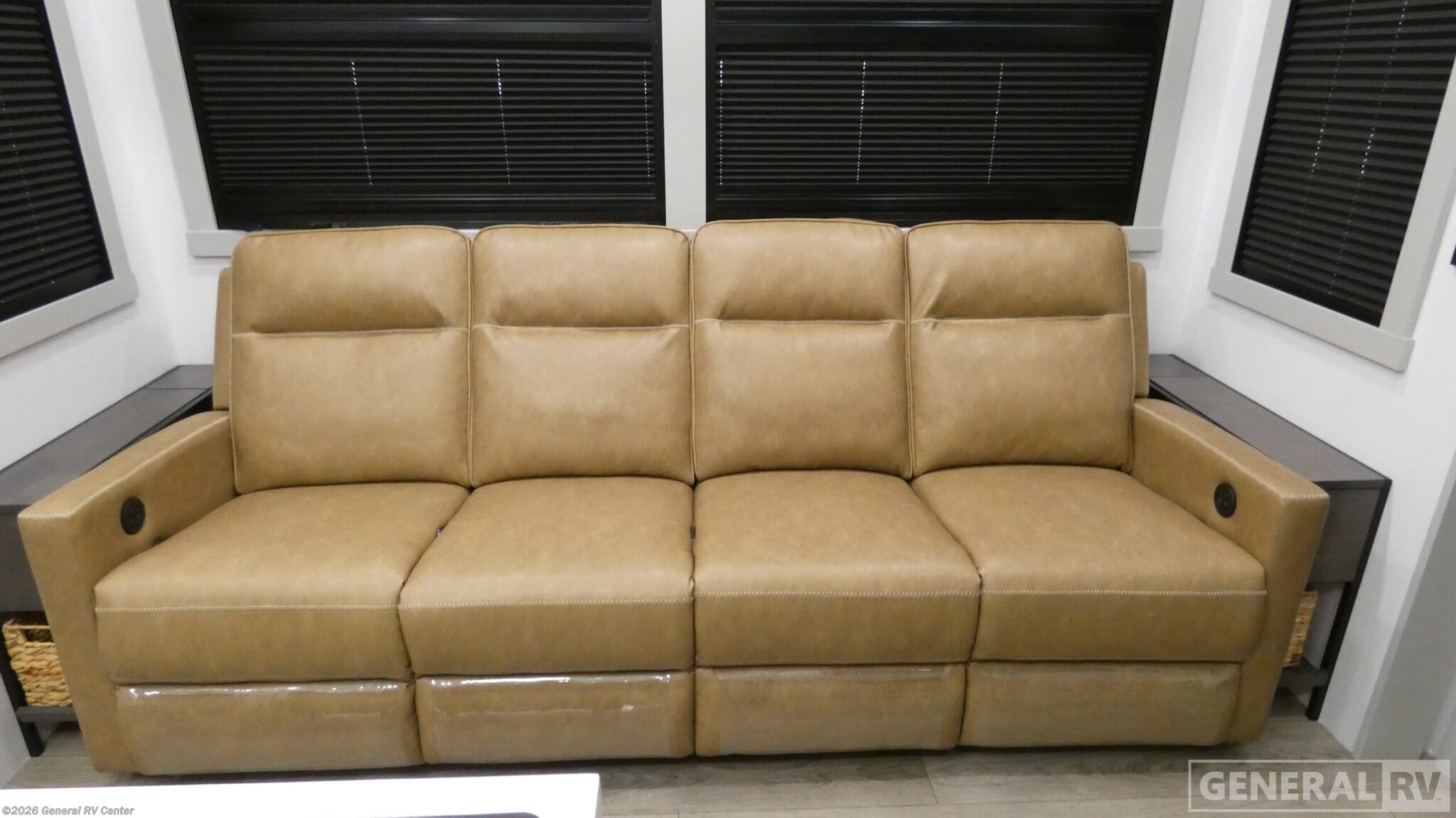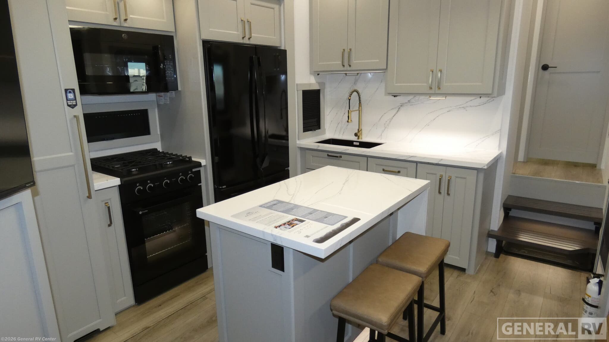 Step into the future of RV living with the 2026 Brinkley Model G 4000. This luxurious fifth wheel is designed for those who crave both adventure and comfort. With an impressive length of over 45 feet, it offers ample space for family and friends, comfortably sleeping up to seven. The dual bedroom setup, featuring a king bed, along with a convertible option, ensures restful nights after days of exploration. The clever floorplan places the kitchen, living, and bath areas centrally, providing a seamless flow throughout the interior. The Model G 4000 is equipped with top-of-the-line amenities, including a full-size electric refrigerator and a four-burner cooktop, perfect for preparing gourmet meals on the road. Enjoy the convenience of a washer and dryer, making extended trips a breeze. The three powered retractable awnings extend your living space outdoors, creating the perfect setting for relaxation under the stars. With a robust fresh water capacity of 150 gallons and substantial gray and black water tanks, your off-grid adventures can last even longer. Whether you're parked by the lake or nestled in the mountains, the Brinkley Model G 4000 is your luxurious home away from home. For more details, visit your nearest General RV dealership.