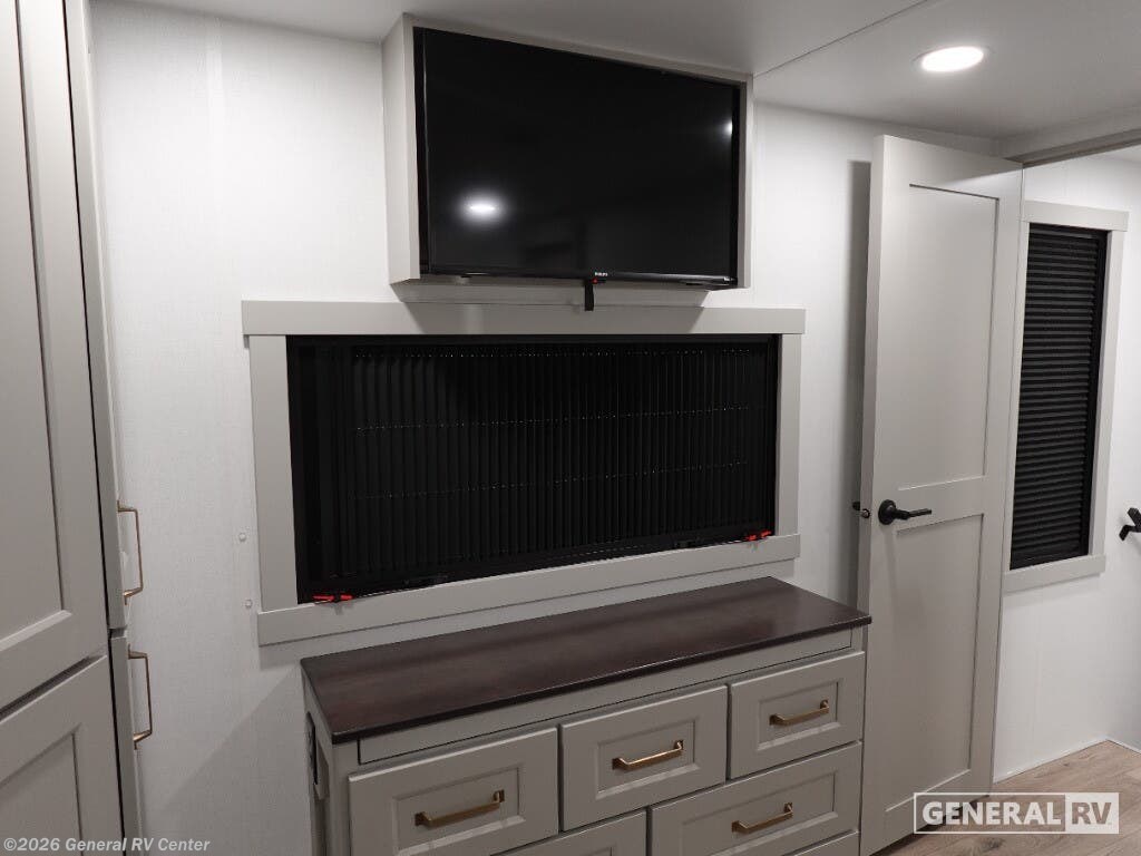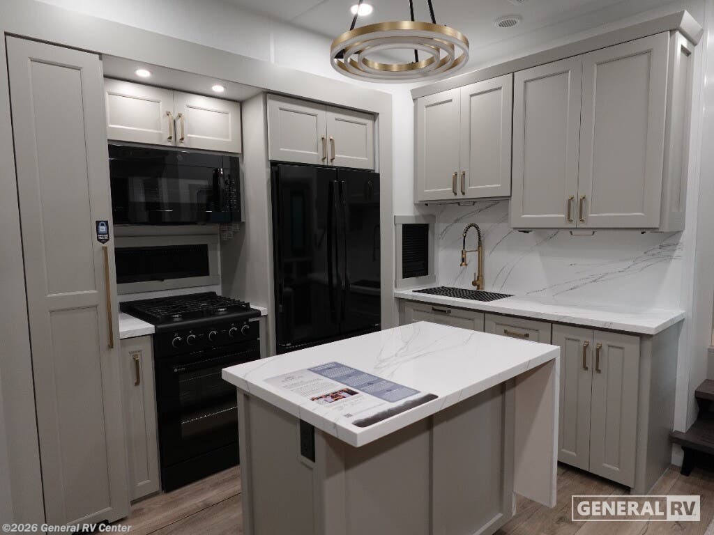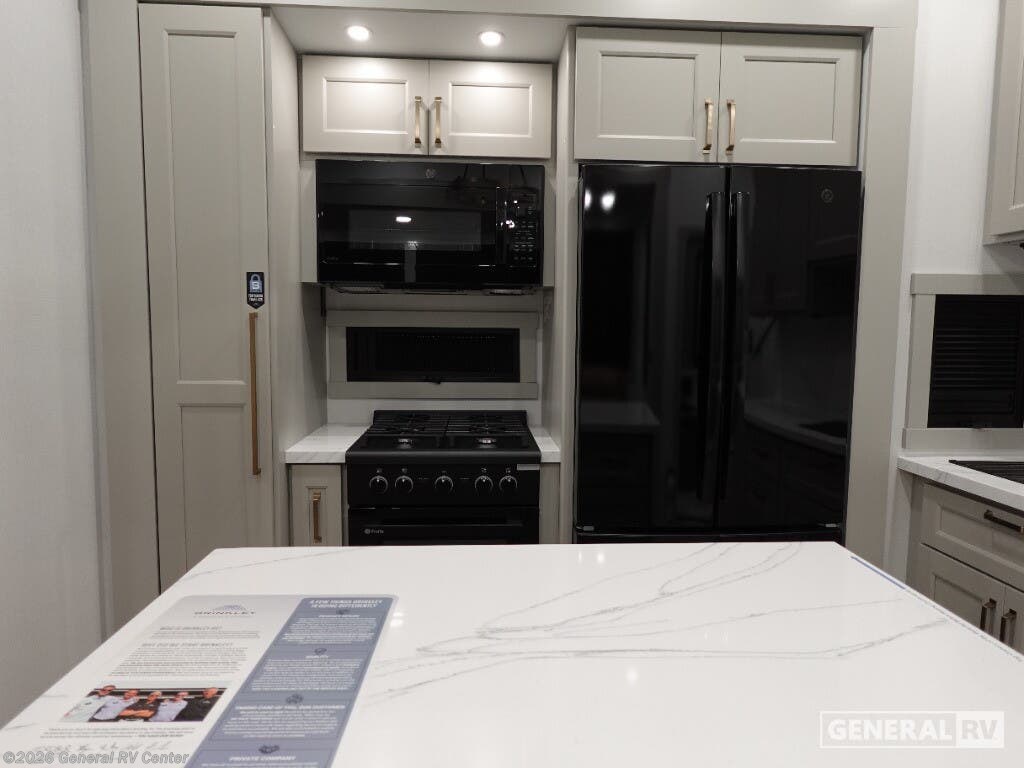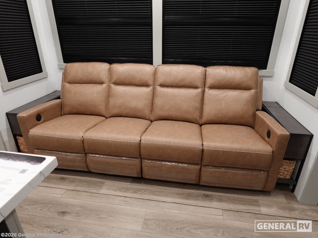 Step into the future of RV living with the 2026 Brinkley Model G 4000. This luxurious fifth wheel is designed for those who crave both adventure and comfort. With an impressive length of over 45 feet, it offers ample space for family and friends, comfortably sleeping up to seven. The dual bedroom setup, featuring a king bed, along with a convertible option, ensures restful nights after days of exploration. The clever floorplan places the kitchen, living, and bath areas centrally, providing a seamless flow throughout the interior. The Model G 4000 is equipped with top-of-the-line amenities, including a full-size electric refrigerator and a four-burner cooktop, perfect for preparing gourmet meals on the road. The three powered retractable awnings extend your living space outdoors, creating the perfect setting for relaxation under the stars. With a robust fresh water capacity of 150 gallons and substantial gray and black water tanks, your off-grid adventures can last even longer. Whether you're parked by the lake or nestled in the mountains, the Brinkley Model G 4000 is your luxurious home away from home. For more details, visit your nearest General RV dealership.