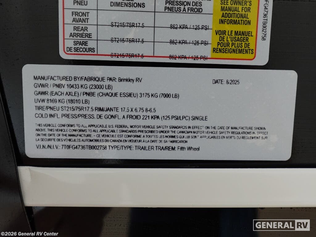 Looking to buy a 2026 Brinkley RV Model G Fifth Wheel RV?
