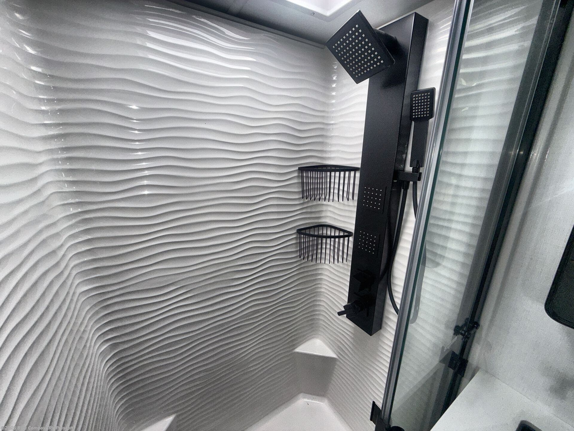With any Model G toy hauler fifth wheel by Brinkley you will enjoy luxurious amenities, tons of storage space, and innovative features that have been developed and tested in the real world. Durable construction includes an industry leading PDI process, an industry best insulation package, and reinforced and walkable slide roofs. Some of the exterior features you'll find are a 3-way pass-through with a multi-functional flip-up bulkhead wall, under I-beam storage, a MAX-Vision reverse lighting system, and a low-maintenance roof to name a few. A Rockford Fosgate audio system comes standard, along with a OneControl app system that lets you control your fifth wheel's functions right from your mobile device. You will find the solar system with a designated storage area to be ultra convenient, plus there is a FlexPower 5500 with a dual fuel inverter generator for all your power needs. Head inside to find a residential interior with Brinkley's CraftSense wood trim construction, floating entrance steps, integrated window screens and insulated blackout blinds, and residential solid surface countertops plus backsplash. You will also enjoy the neon shower lighting and recessed medicine cabinets in the bath, plus motion activated LED bed lights and dual bedside outlets in the bedroom. Choose a Model G toy hauler fifth wheel to experience all the luxury it has to offer!