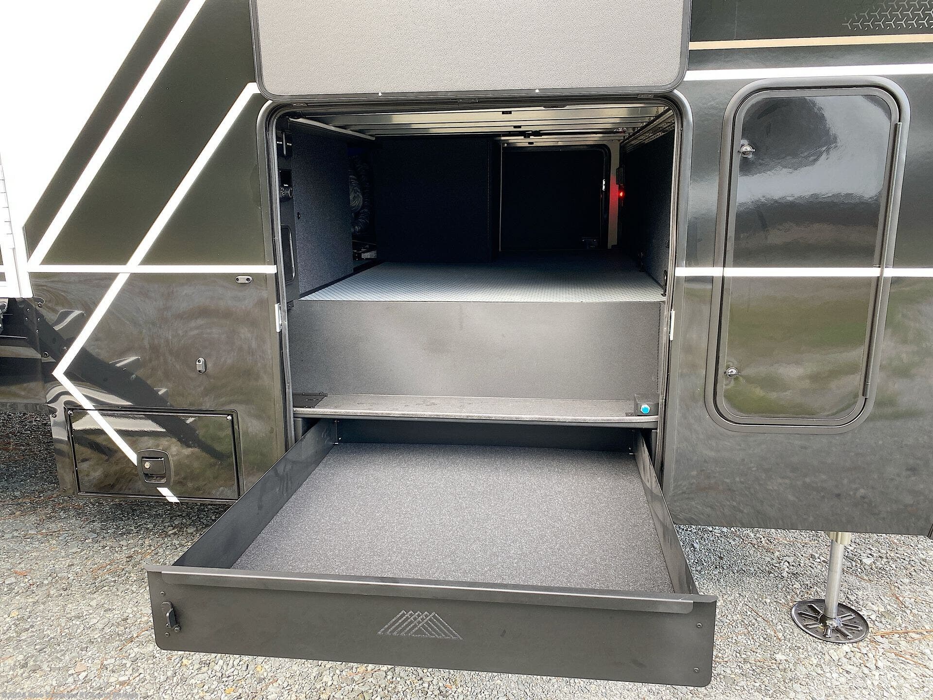 With any Model G toy hauler fifth wheel by Brinkley you will enjoy luxurious amenities, tons of storage space, and innovative features that have been developed and tested in the real world. Durable construction includes an industry leading PDI process, an industry best insulation package, and reinforced and walkable slide roofs. Some of the exterior features you'll find are a 3-way pass-through with a multi-functional flip-up bulkhead wall, under I-beam storage, a MAX-Vision reverse lighting system, and a low-maintenance roof to name a few. A Rockford Fosgate audio system comes standard, along with a OneControl app system that lets you control your fifth wheel's functions right from your mobile device. You will find the solar system with a designated storage area to be ultra convenient, plus there is a FlexPower 5500 with a dual fuel inverter generator for all your power needs. Head inside to find a residential interior with Brinkley's CraftSense wood trim construction, floating entrance steps, integrated window screens and insulated blackout blinds, and residential solid surface countertops plus backsplash. You will also enjoy the neon shower lighting and recessed medicine cabinets in the bath, plus motion activated LED bed lights and dual bedside outlets in the bedroom. Choose a Model G toy hauler fifth wheel to experience all the luxury it has to offer!