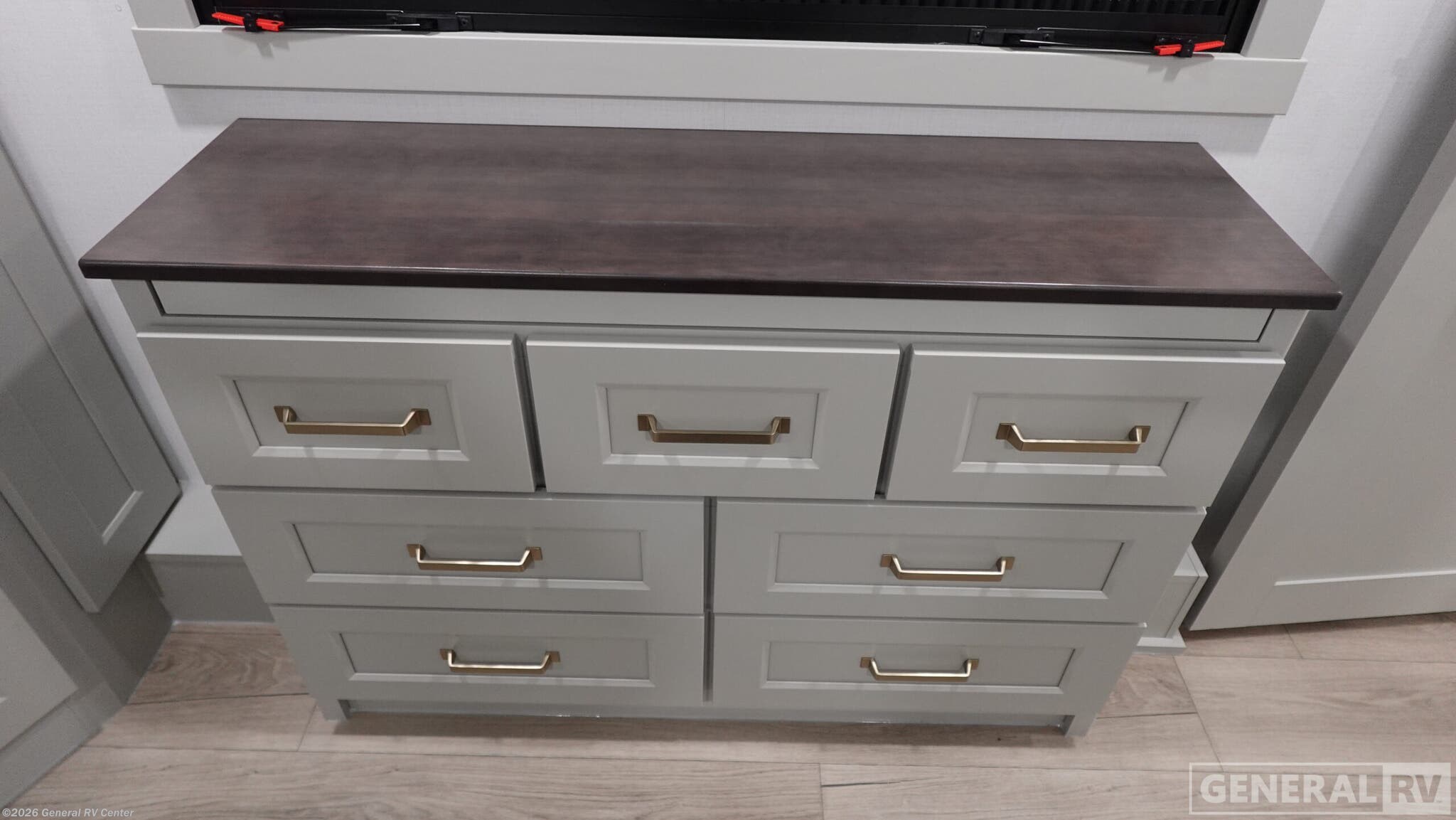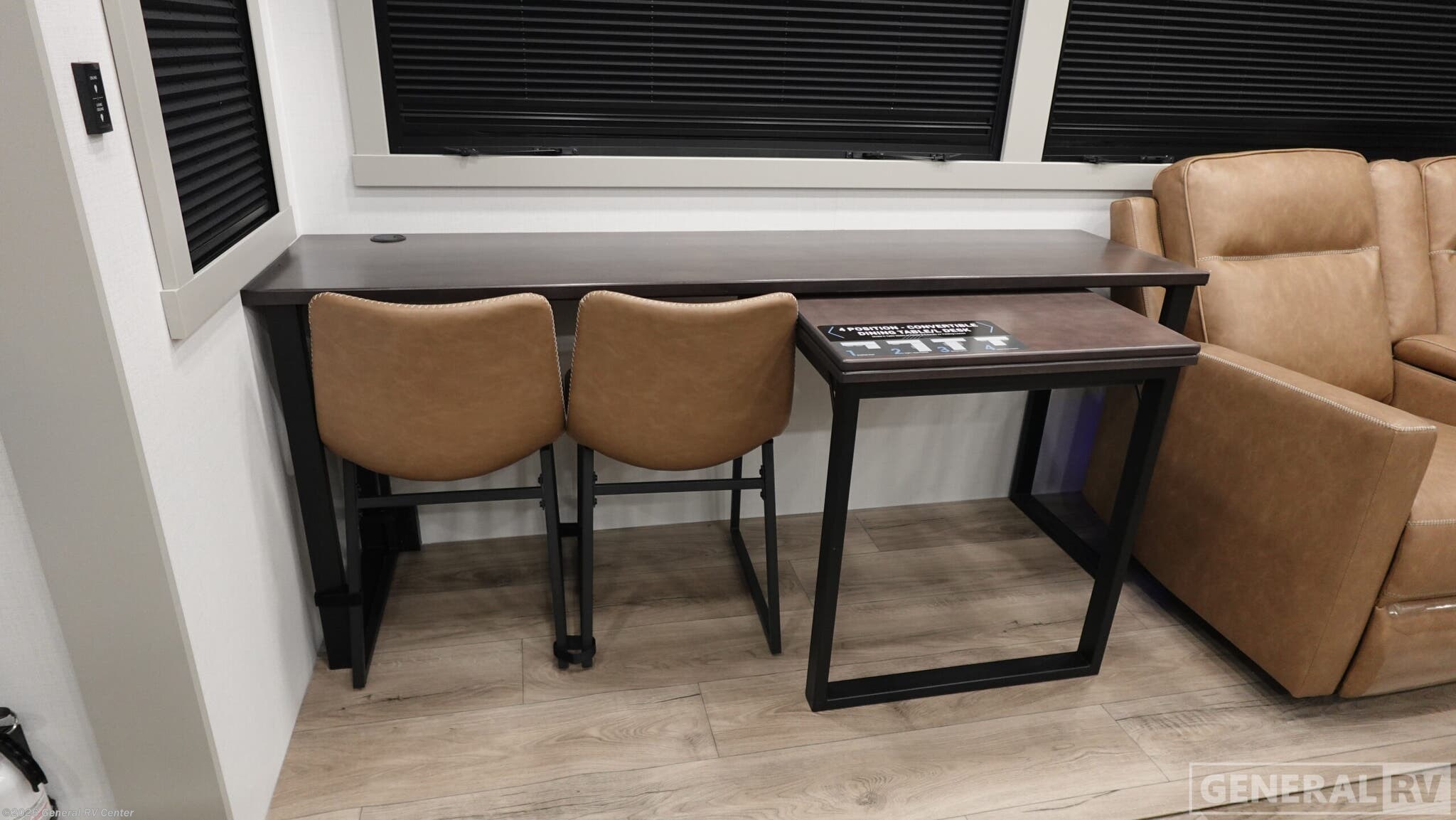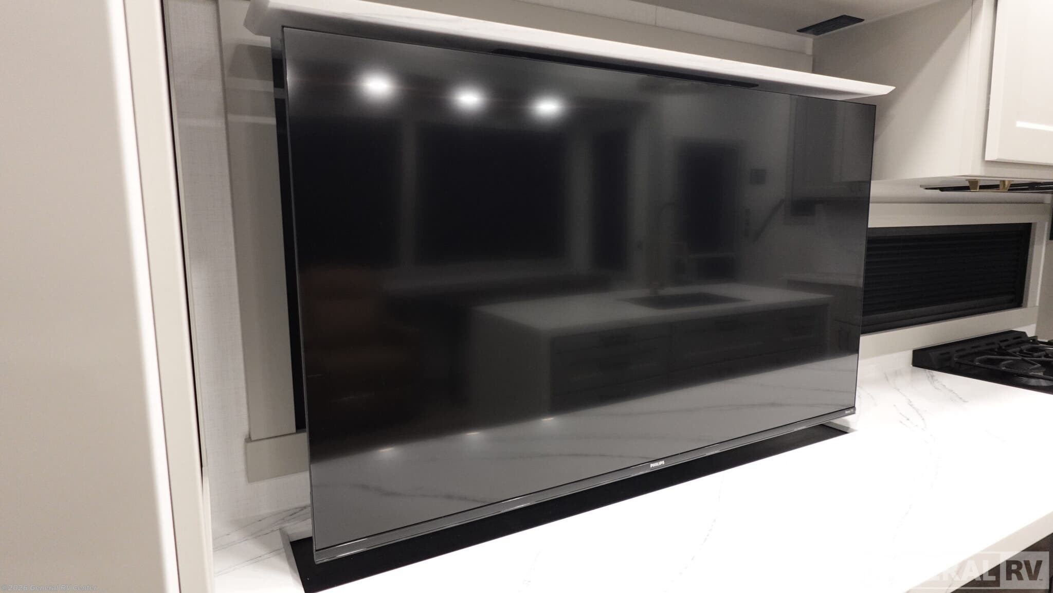 Step into the future of luxury travel with the 2026 Brinkley Model G 4100. This RV is designed to be your home away from home, offering an exquisite blend of comfort and functionality. With its expansive 45.92-foot length, this model provides ample space for the whole family, comfortably sleeping up to seven people. The sleeping arrangements include a cozy queen bed, a luxurious king bed, and a versatile convertible bed, ensuring everyone has their own space to unwind after a day of adventure. The heart of this RV is its center kitchen, equipped with a full-size electric refrigerator and a four-burner cooktop, perfect for preparing gourmet meals on the road. The spacious center living area is ideal for relaxing or entertaining, while the center bath features a sleek plastic and glass shower, offering a refreshing retreat. With three slides and three powered retractable awnings, the Model G 4100 maximizes both indoor and outdoor living spaces. Plus, the inclusion of a washer and dryer means you can enjoy extended trips without sacrificing convenience. Whether you're planning a weekend getaway or an extended road trip, the Brinkley Model G 4100 is engineered to meet your every need. Its robust water capacities, automatic heater, and thoughtful floorplan features ensure you're always ready for the next adventure. Experience the pinnacle of RV living with Brinkley, and discover why this model is the perfect choice for those who crave both luxury and practicality. For more information, visit your nearest General RV dealership.