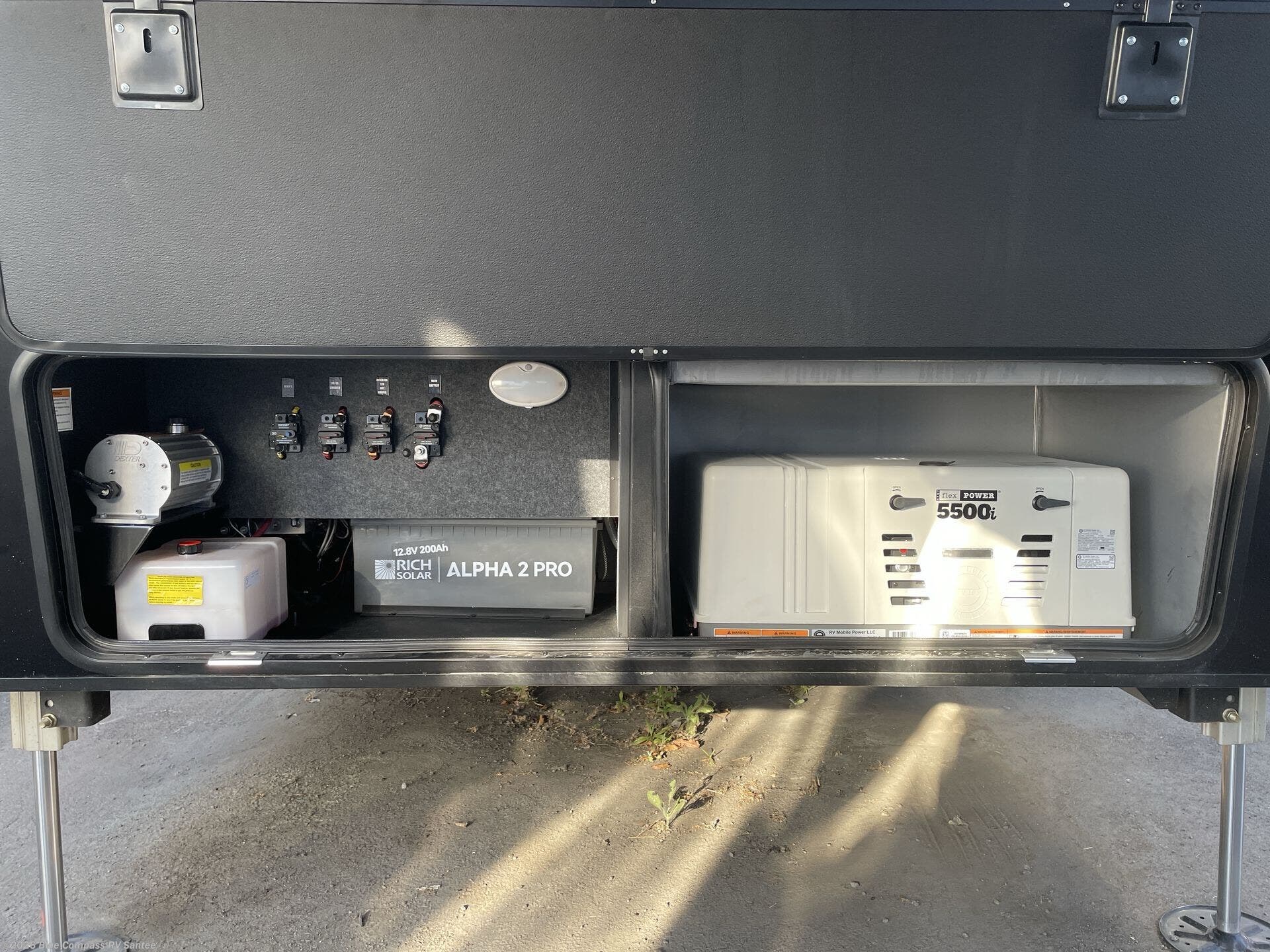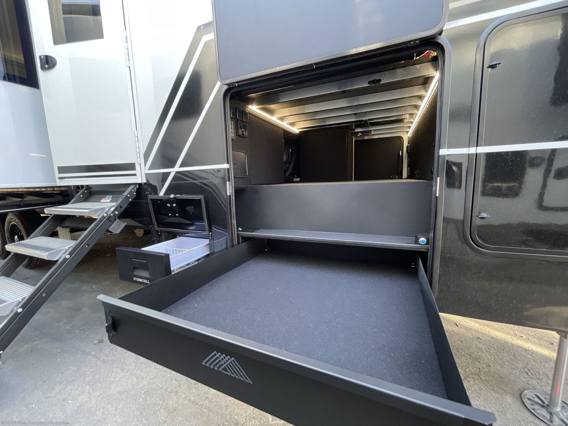With any Model G toy hauler fifth wheel by Brinkley you will enjoy luxurious amenities, tons of storage space, and innovative features that have been developed and tested in the real world. Durable construction includes an industry leading PDI process, an industry best insulation package, and reinforced and walkable slide roofs. Some of the exterior features you'll find are a 3-way pass-through with a multi-functional flip-up bulkhead wall, under I-beam storage, a MAX-Vision reverse lighting system, and a low-maintenance roof to name a few. A Rockford Fosgate audio system comes standard, along with a OneControl app system that lets you control your fifth wheel's functions right from your mobile device. You will find the solar system with a designated storage area to be ultra convenient, plus there is a FlexPower 5500 with a dual fuel inverter generator for all your power needs. Head inside to find a residential interior with Brinkley's CraftSense wood trim construction, floating entrance steps, integrated window screens and insulated blackout blinds, and residential solid surface countertops plus backsplash. You will also enjoy the neon shower lighting and recessed medicine cabinets in the bath, plus motion activated LED bed lights and dual bedside outlets in the bedroom. Choose a Model G toy hauler fifth wheel to experience all the luxury it has to offer!