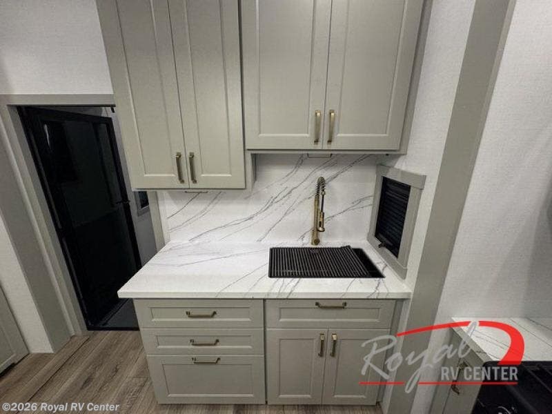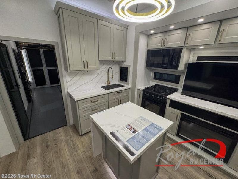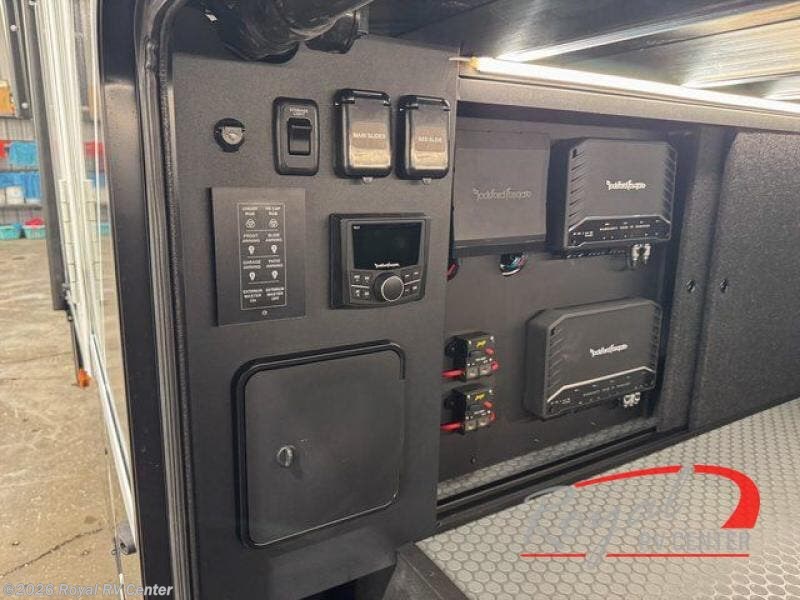 Visit Royal RV Center in Middlebury, Indiana, today to tour this exceptional luxury toy hauler in person.