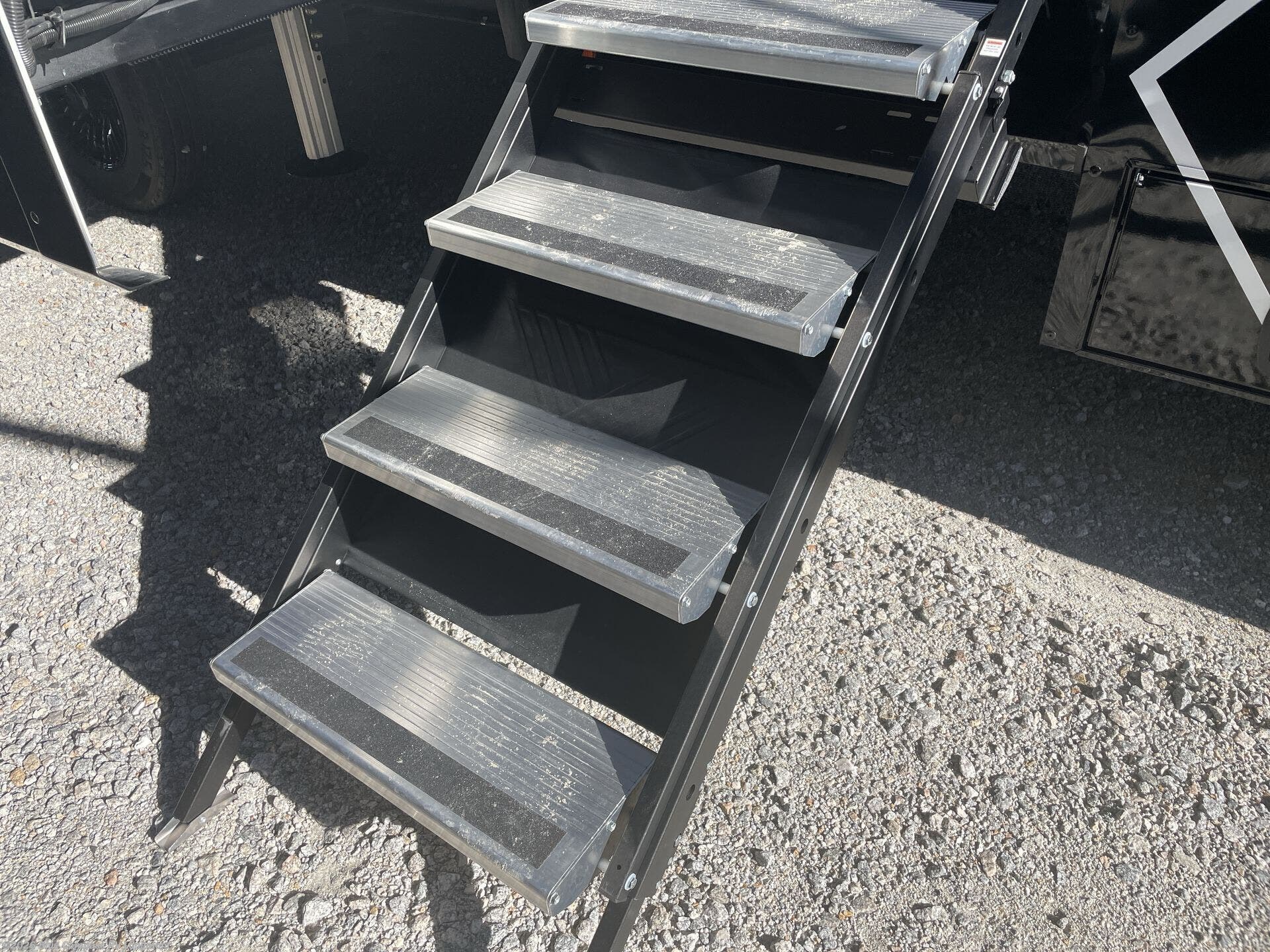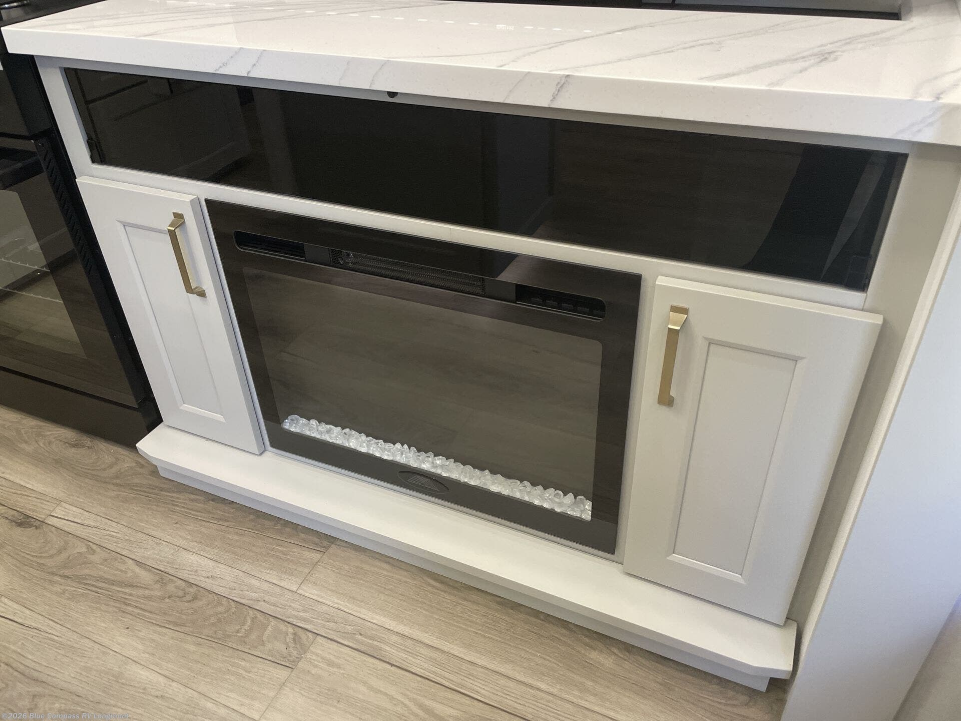 Load up your favorite riding toys and head for the trails in this spacious toy hauler with tons of cargo space! Once the bikes are out, you can relax on the independent dual sofas with a Fold-N Stow Table between or utilize the drop-down bed for a rest. The garage also includes a max-space half bath with fold-away walls and a sink plus a loft/storage for extra sleeping or storage space! Head to the combined kitchen and living area that features dual 2x recliners with heat and massage, dual opposing slides, plus a televator TV and fireplace. The chef of your group will appreciate the waterfall island that converts to a peninsula for more prep space, along with a spice rack and a pull-down utensil tray and knife rack! The spacious full bath includes a residential shower, a space saver door, a solid surface countertop and many more comforts. Last but not least, the front private bedroom will be your own oasis each night that features a king bed slide out, underbed storage drawers and motion lights, a dresser with hidden storage, plus a walk-in closet with cordless vacuum prep and washer/dryer prep!